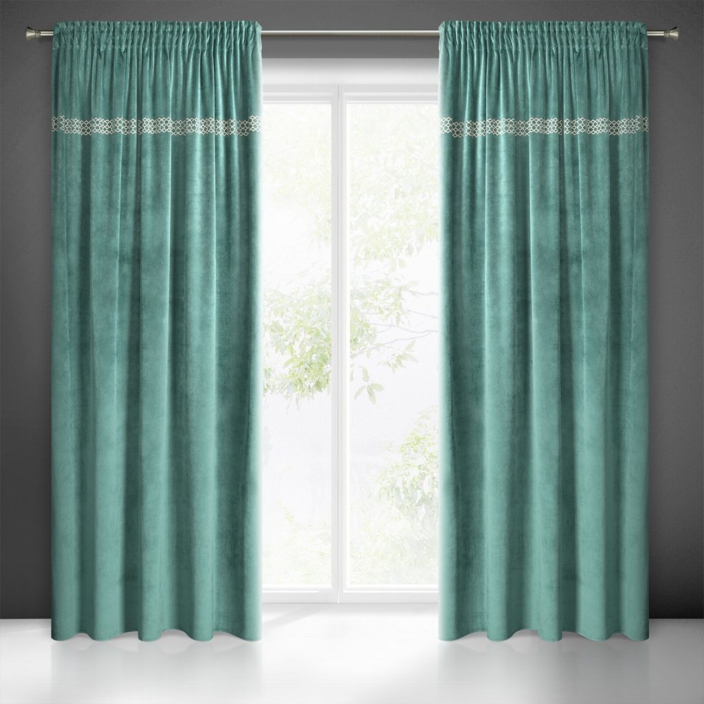 Sametový závěs se vzorem kamínků šířka: 140 cm, délka: 270 cm, barva: zelená, hmotnost: 200 GSM, složení: 100 % polyesterDoplňkové parametry