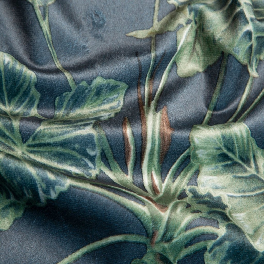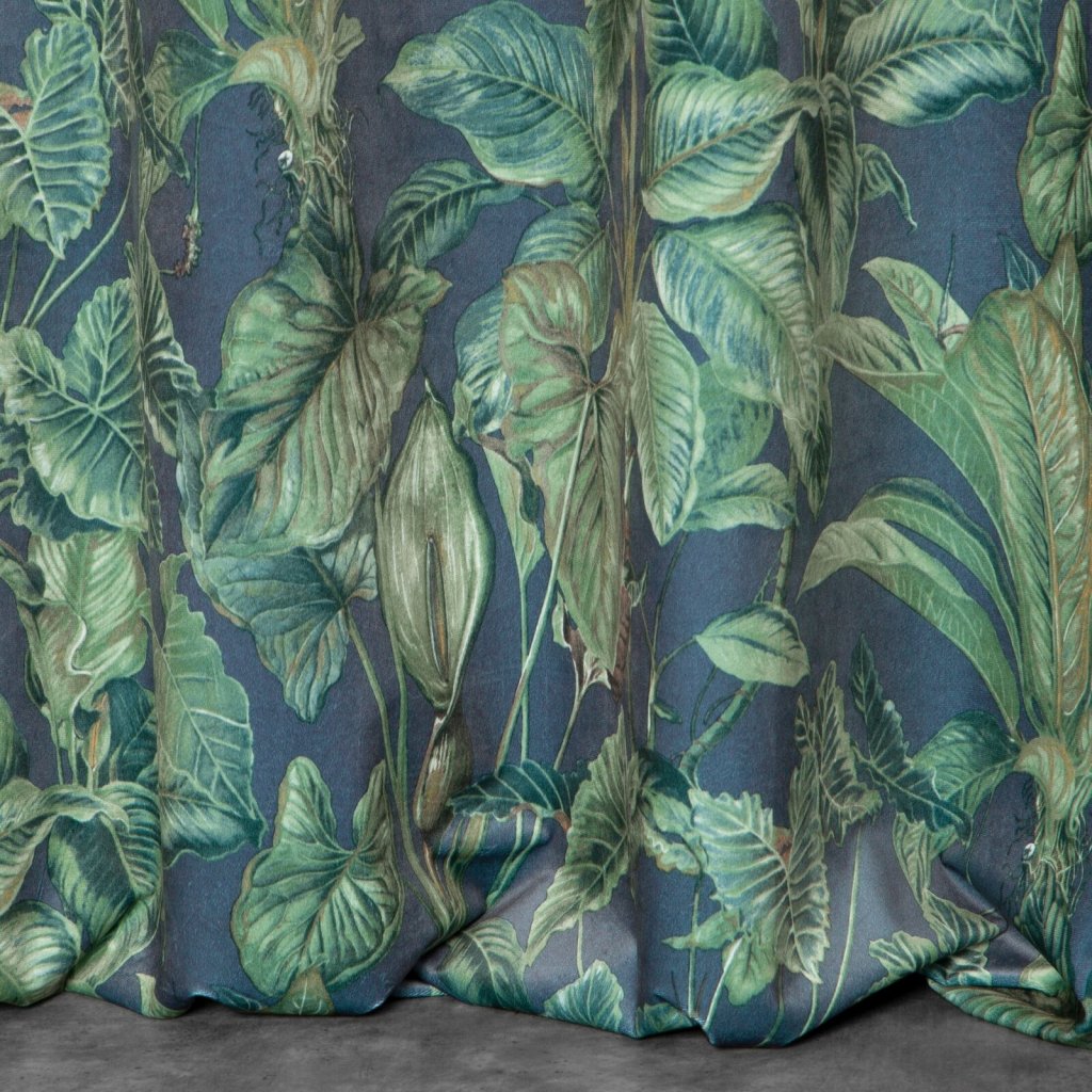 Sametový závěs s potiskem listů, šířka: 140 cm, délka: 270 cm, barva: vícebarevná, hmotnost: 200 GSM, složení: 100% polyester.Doplňkové parametry