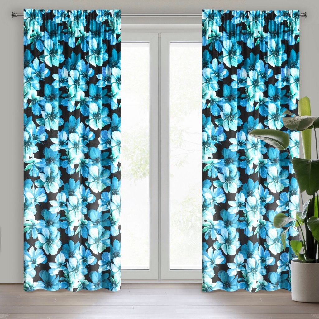 Sametový závěs s potiskem Šířka: 140 cm, Délka: 270 cm, Barva: černá/modrá, Hmotnost: 200 GSM, složení: 100 % polyesterDoplňkové parametry