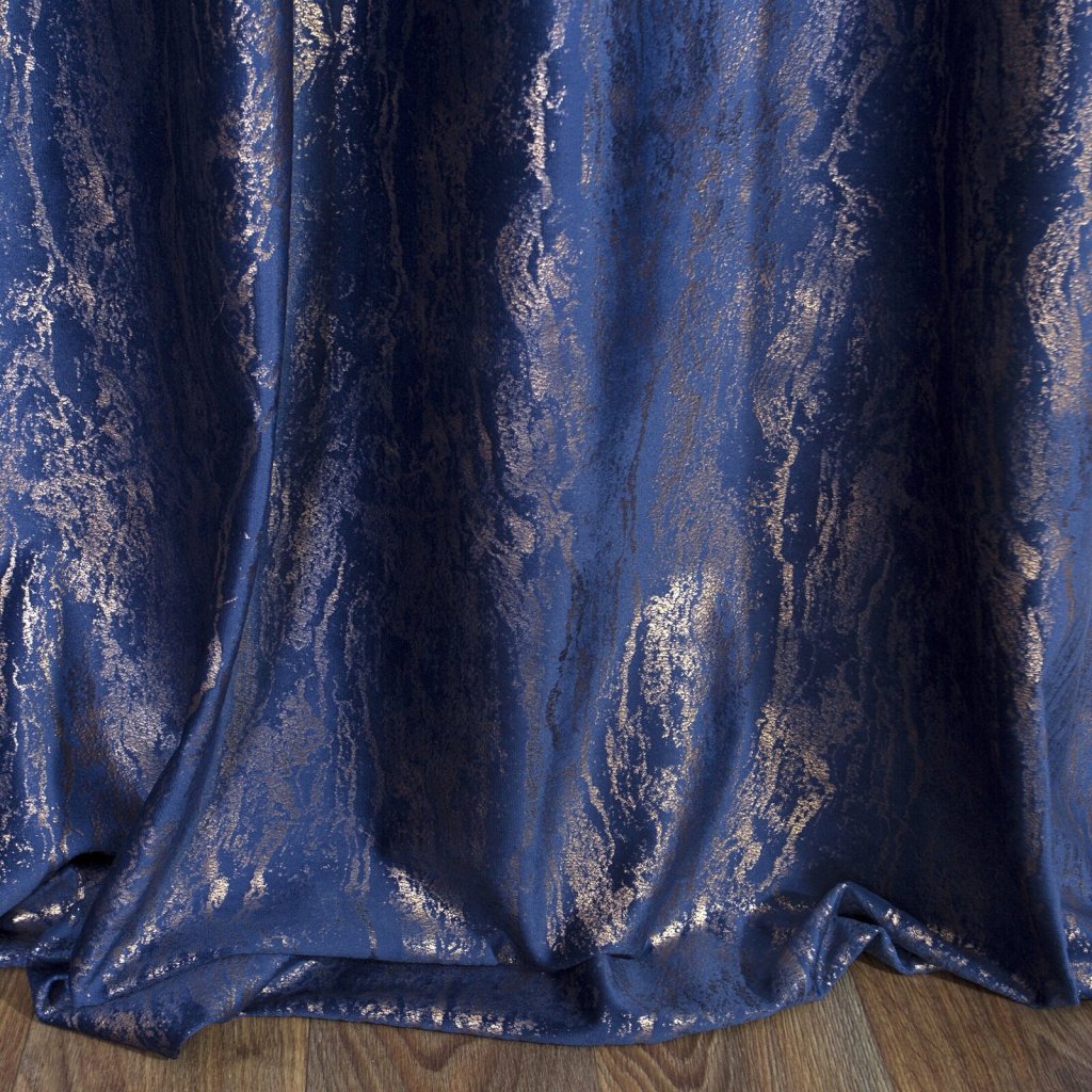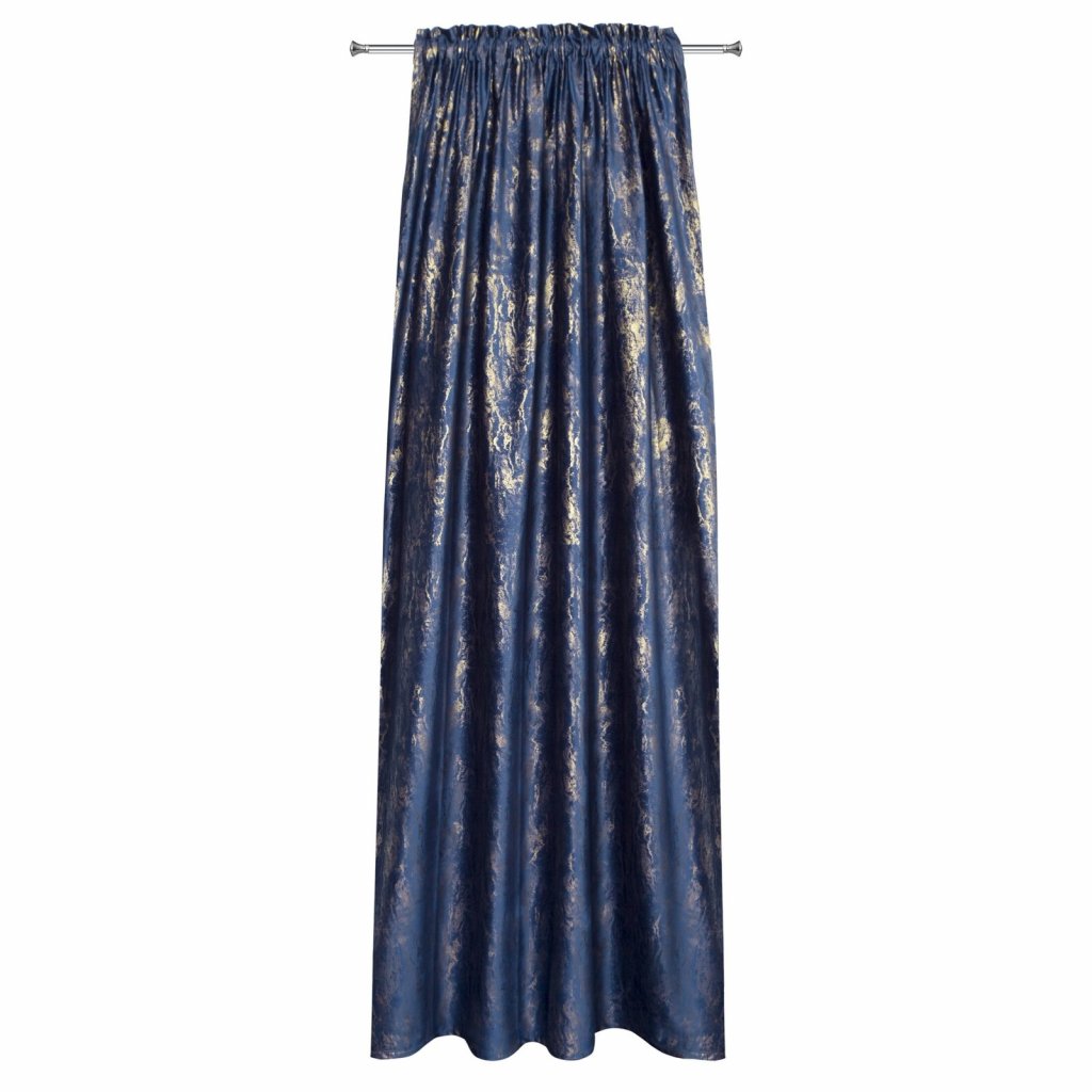 Sametový závěs se zlatým potiskem, šířka: 140 cm, délka: 270 cm, barva: tmavě modrá, hmotnost: 220 GSM, složení: 100% polyester.Doplňkové parametry
