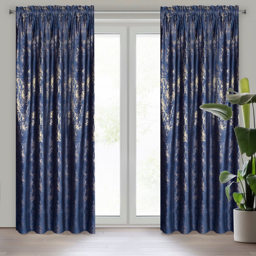 Sametový závěs se zlatým potiskem šířka: 140 cm, délka: 270 cm, barva: tmavě modrá, hmotnost: 220 GSM, složení: 100 % polyesterDoplňkové parametry
