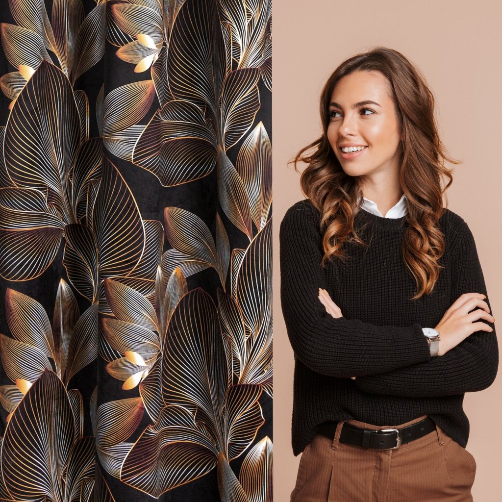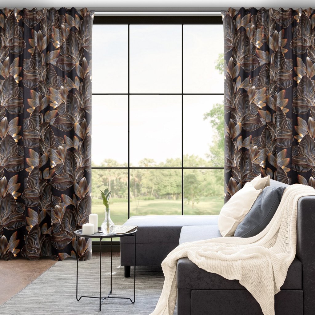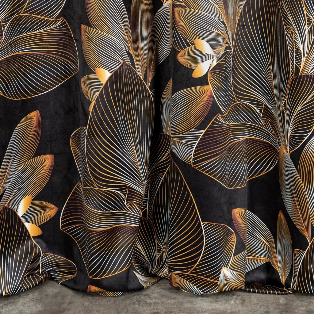 Sametový závěs na pásce s potiskem květin, šířka: 140 cm, délka: 270 cm, barva: vícebarevná, hmotnost: 200 GSM, složení: 100% polyester.Doplňkové parametry