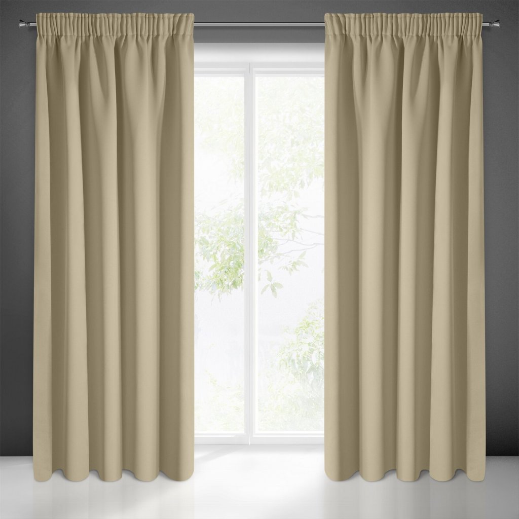 Elegantní jednobarevný závěs z látky s vysokým stupněm stínění. Teplá, matná tkanina bez dekorace je univerzálním prvkem interiérového designu. Šířka: 135 cm, délka: 270 cm, barva: béžová, hmotnost: 210 GSM, složení: 100 % polyesterDoplňkové parametry