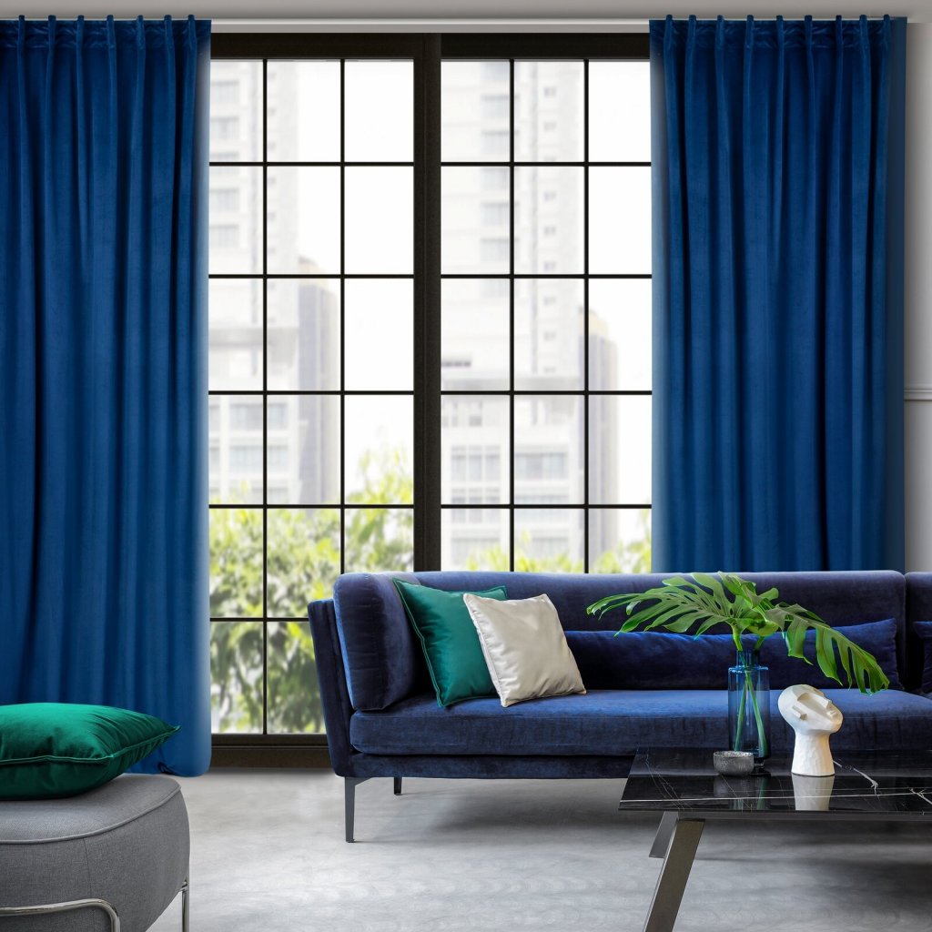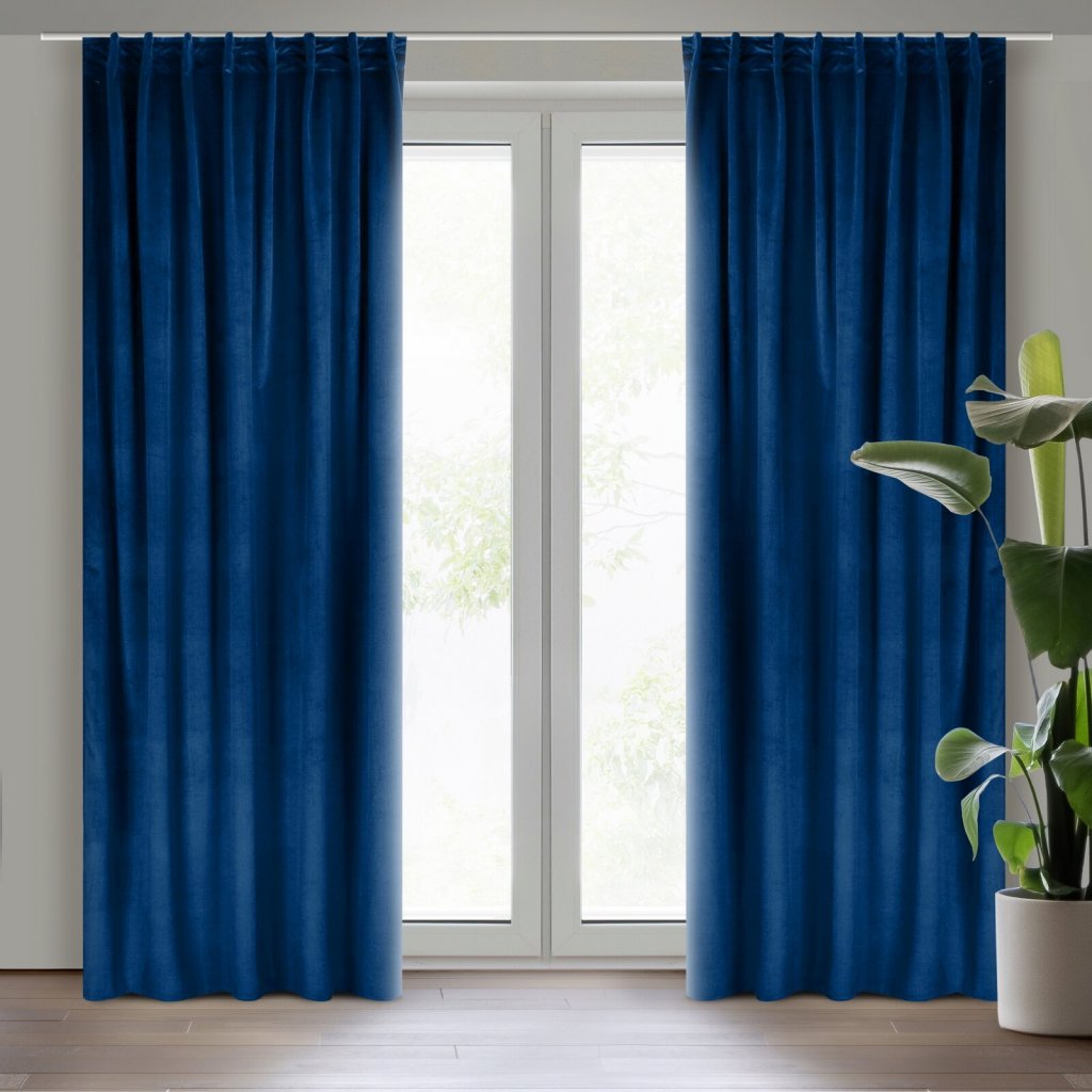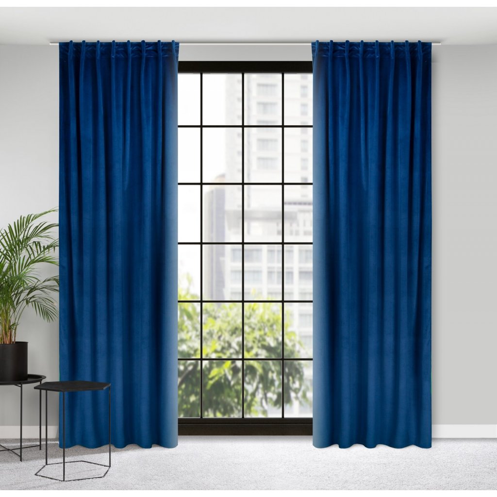 Sametový závěs, jednobarevný s páskou i na stropní kolejnice šířka: 140 cm, délka: 300 cm, barva: královská modrá, hmotnost: 200 GSM, složení: 100 % polyesterDoplňkové parametry