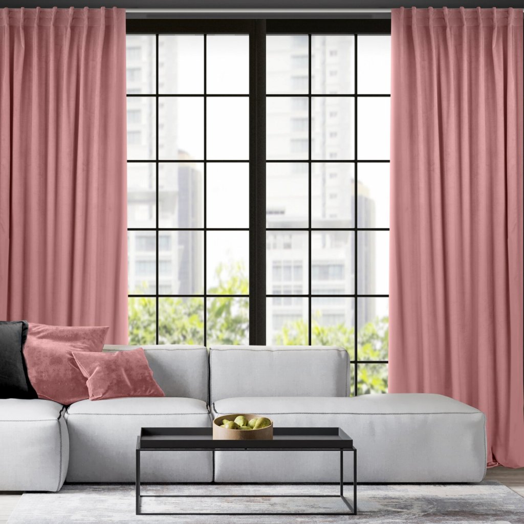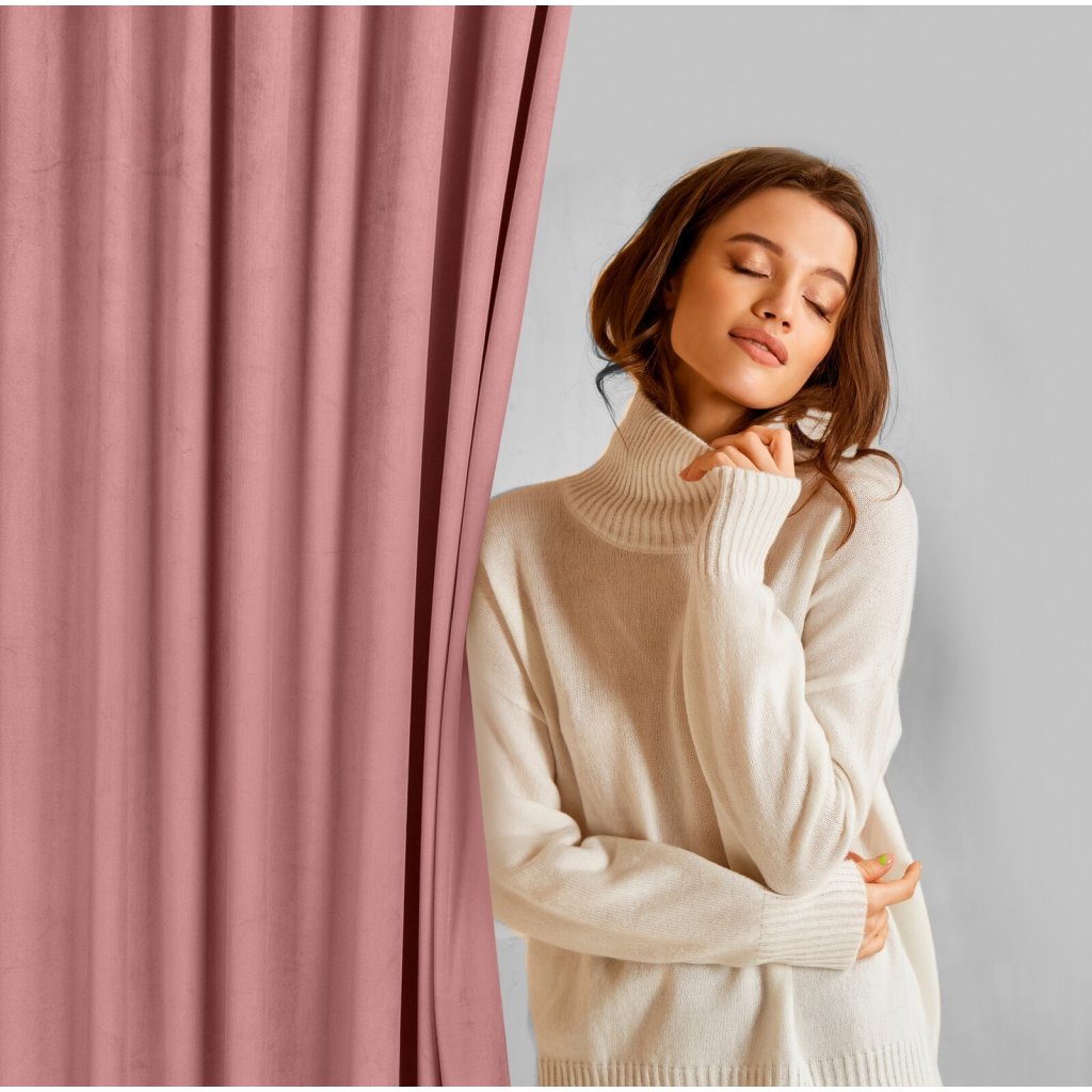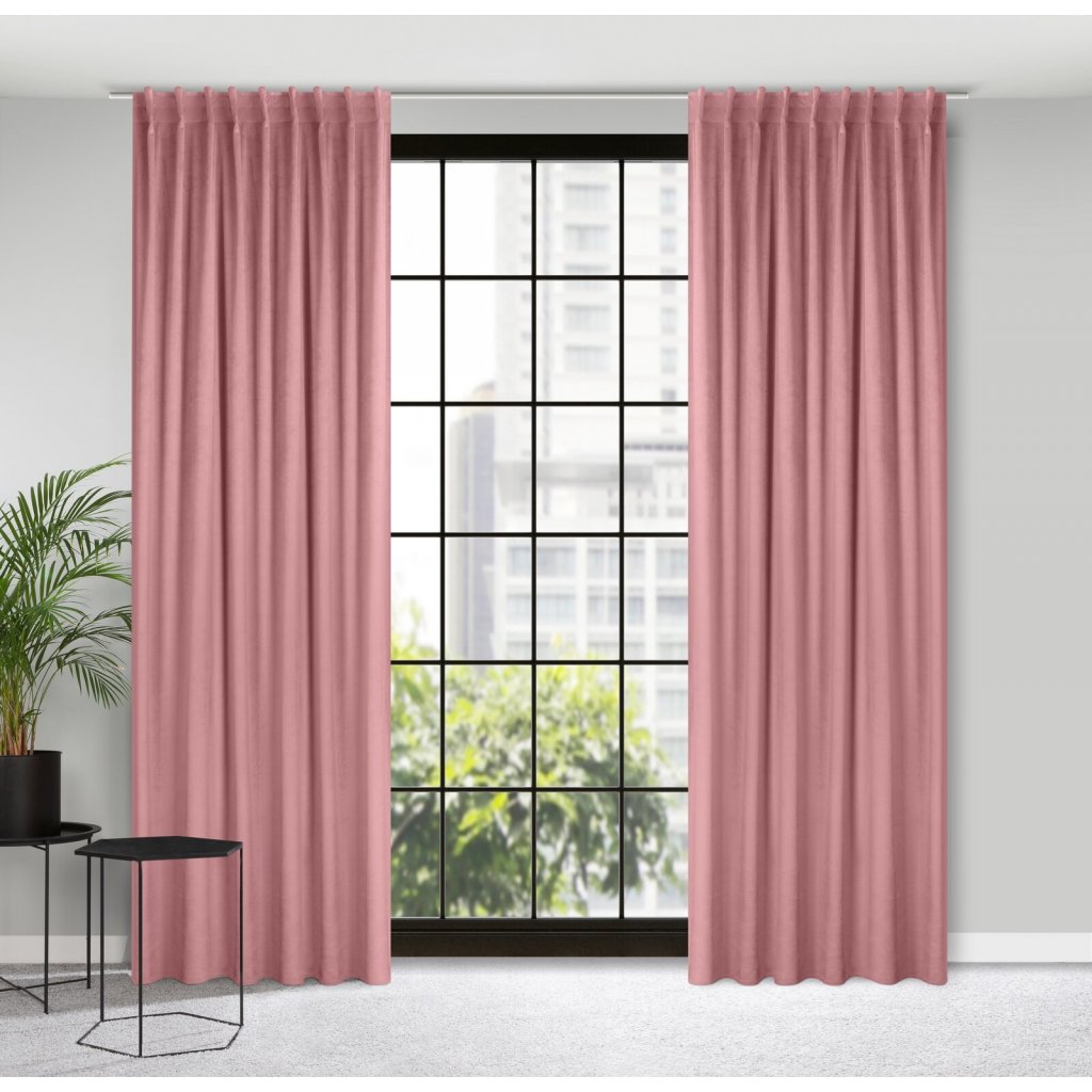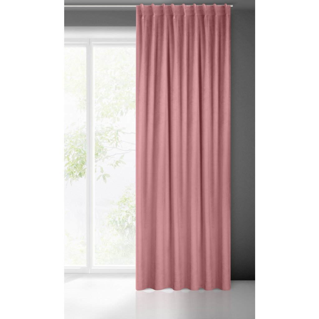 Sametový závěs, jednobarevný s páskou i na stropní kolejnice šířka: 140 cm, délka: 300 cm, barva: starorůžová, hmotnost: 200 GSM, složení: 100 % polyesterDoplňkové parametry
