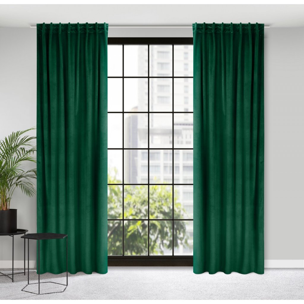 Sametový závěs, jednobarevný s páskou i na stropní kolejnice šířka: 140 cm, délka: 300 cm, barva: zelená, hmotnost: 200 GSM, složení: 100 % polyesterDoplňkové parametry