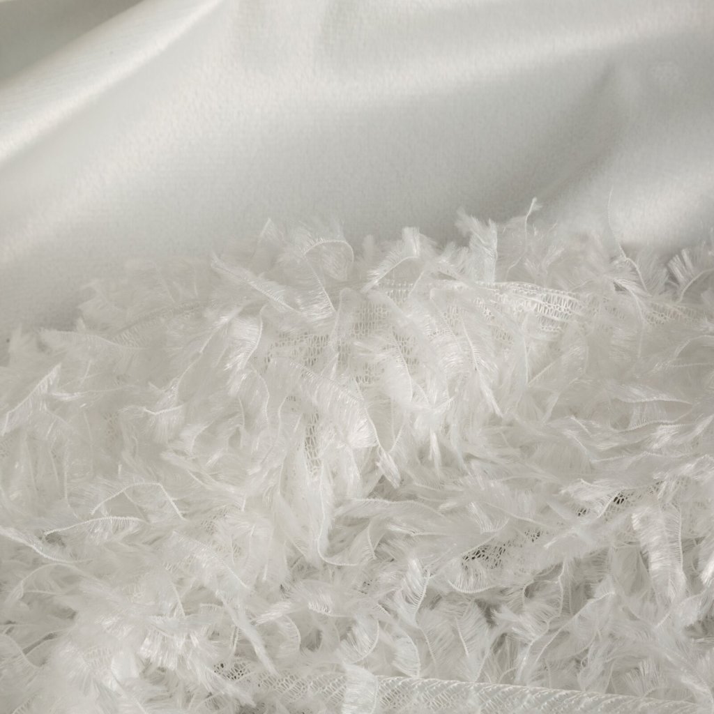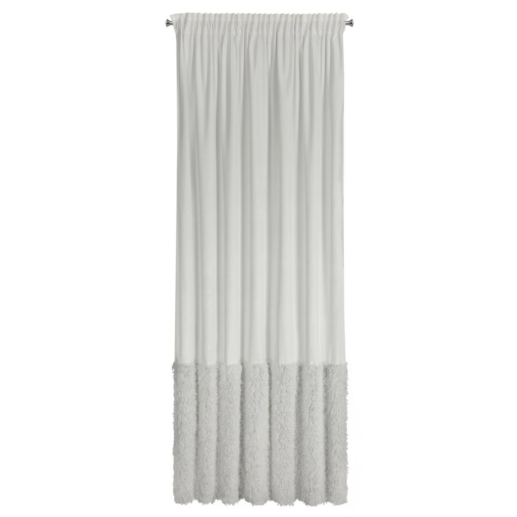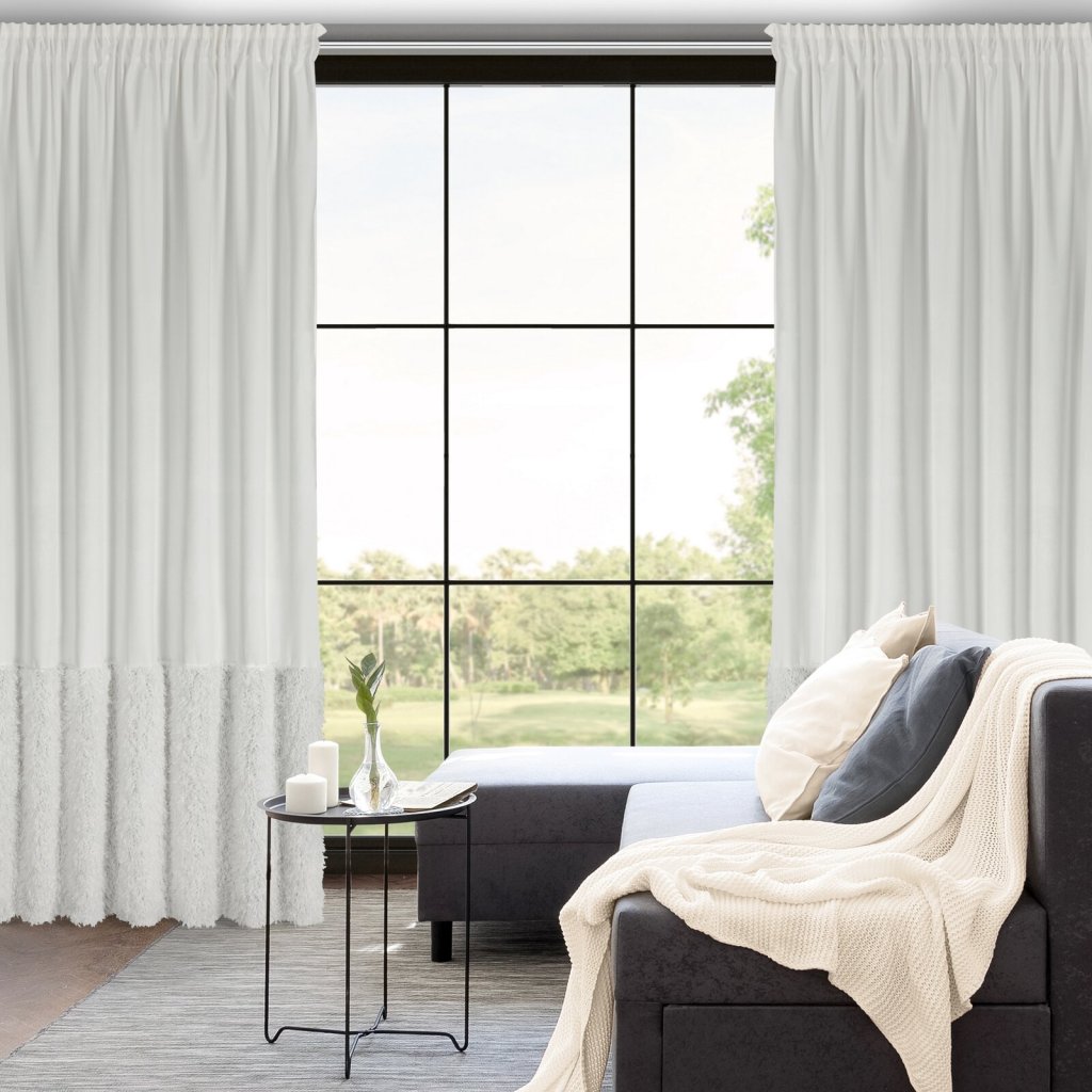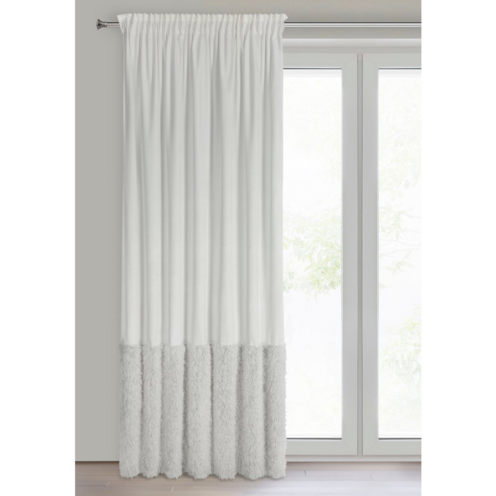 Hotový sametový závěs s chlupatou aplikací, šířka: 140 cm, délka: 270 cm, barva: bílá, hmotnost: 230 GSM, složení: 100% polyester.Doplňkové parametry