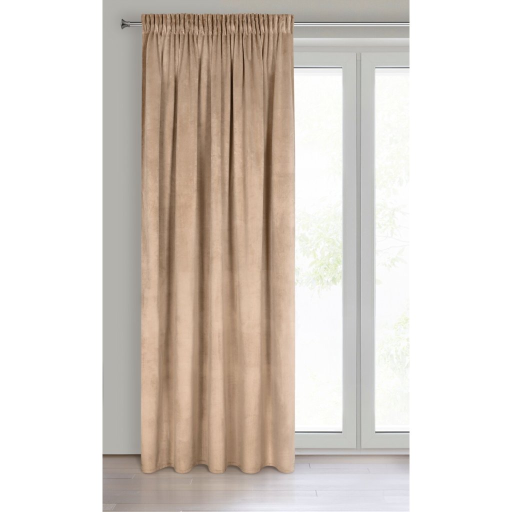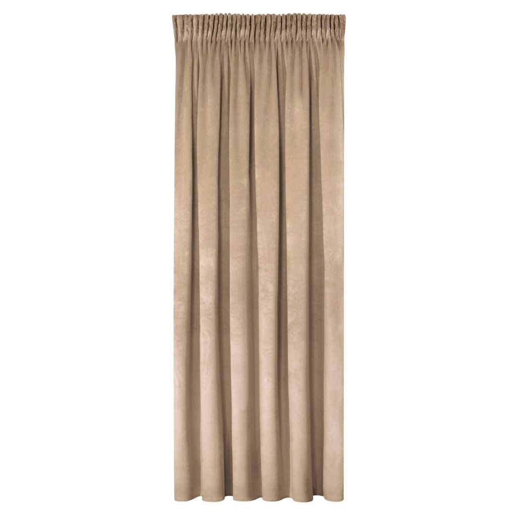 Jemný sametový závěs s matným povrchem. Masová tkanina se středními vlastnostmi zatemnění dodává interiéru elegantní charakter, šířka: 140 cm, délka: 270 cm, barva: tmavě béžová, hmotnost: 200 GSM, složení: 100% polyester.Doplňkové parametry
