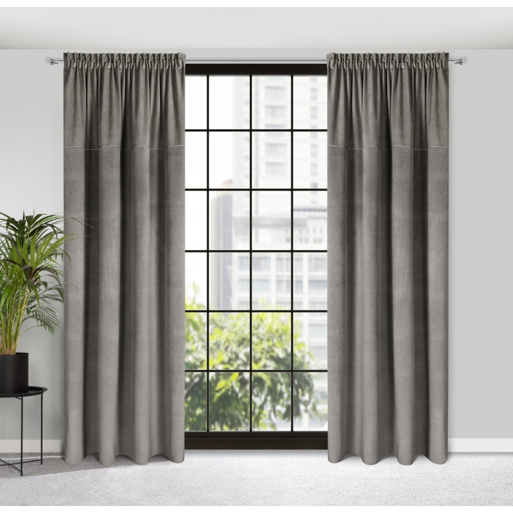 Strukturální sametový závěs, šířka: 140 cm, délka: 300 cm, barva: šedá, hmotnost: 200 GSM, složení: 100% polyester.Doplňkové parametry