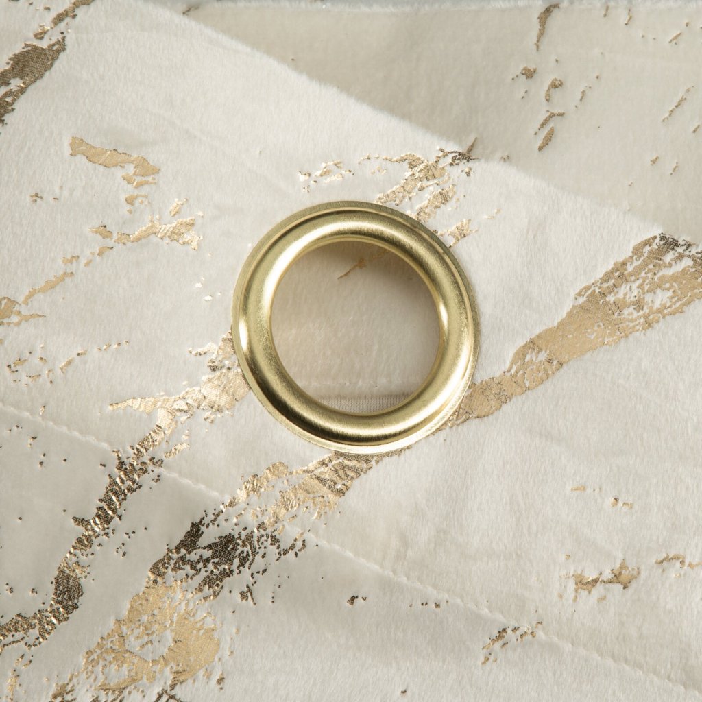 Hotový sametový závěs s lesklým zlatým potiskem, šířka: 140 cm, délka: 270 cm, barva: béžová, gramáž: 200 GSM, složení: 100% polyester.Doplňkové parametry