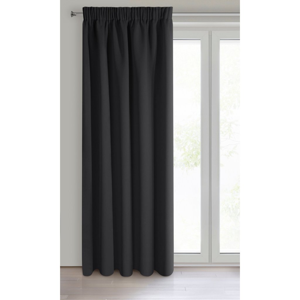 Zatemňovací závěs vyrobený z masivní zatemňovací látky. Výborná tepelná a zvuková izolace interiéru. Jednobarevný závěs s minimalistickým designem, Šířka: 135 cm, délka: 270 cm, barva: černá, hmotnost: 210 GSM, složení: 100% polyester.Doplňkové parametry