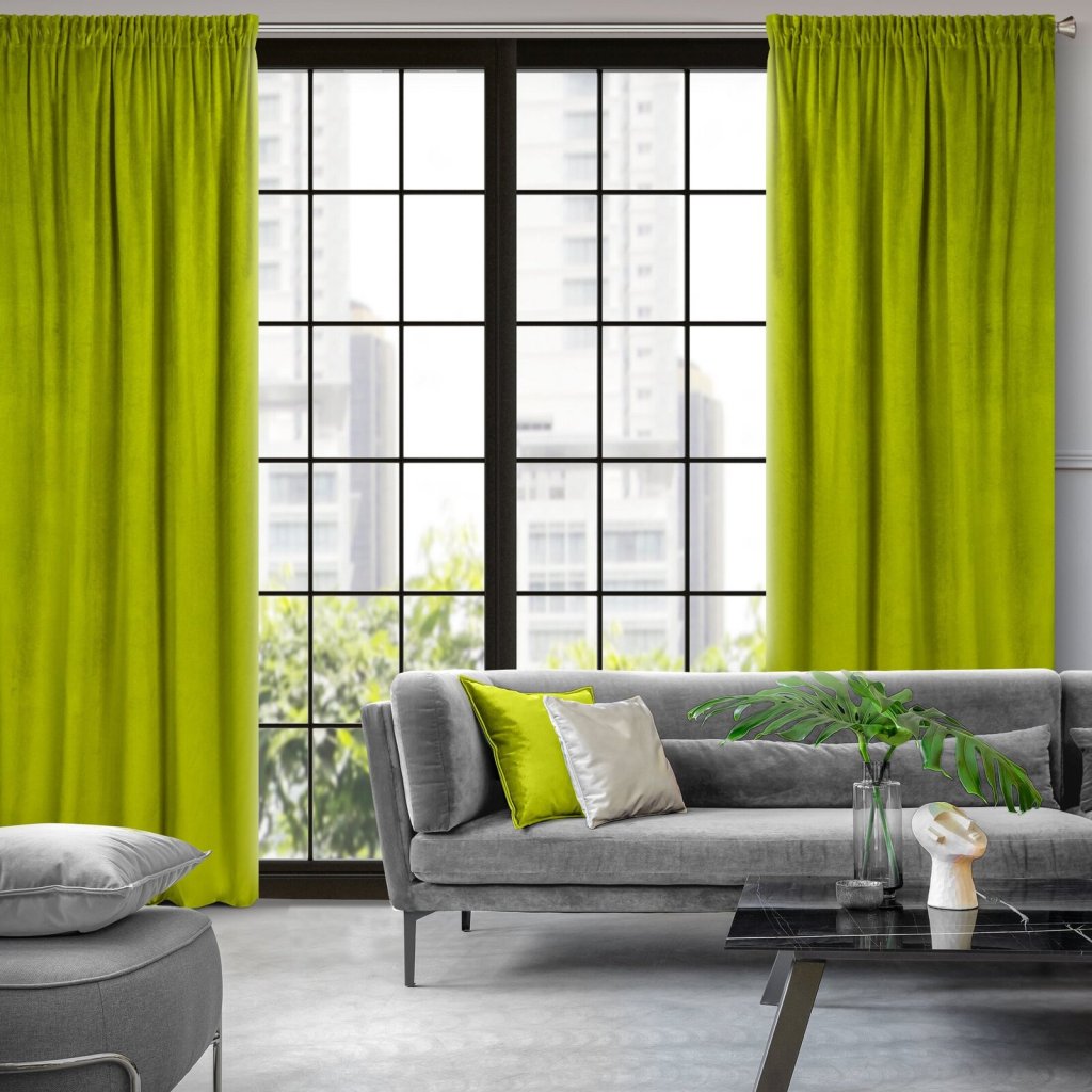 Jemný konfekční závěs z jednobarevného sametu s leskem charakteristickým pro samet. Masivní tkanina poskytuje vysoký stupeň zatemnění, šířka: 140 cm, délka: 300 cm, barva: olivová, hmotnost: 215 GSM, složení: 100% polyester.Doplňkové parametry