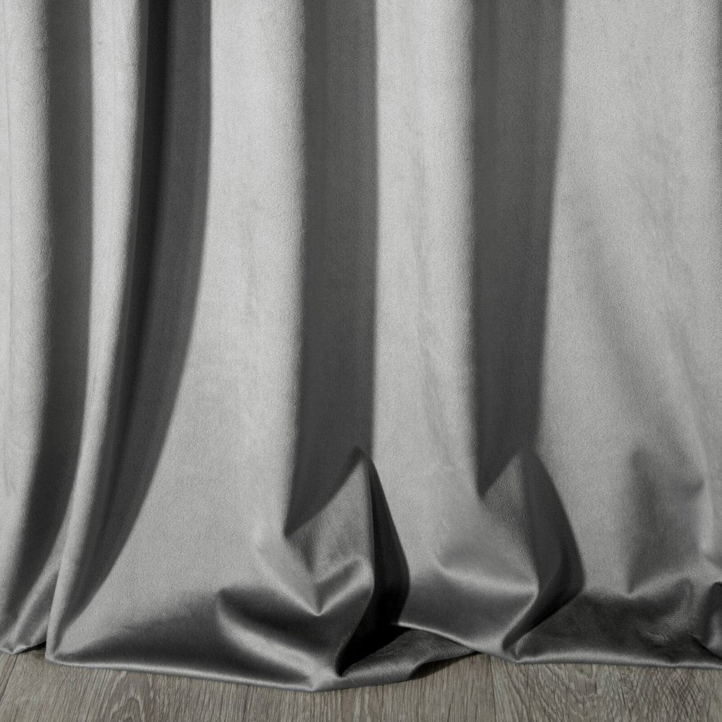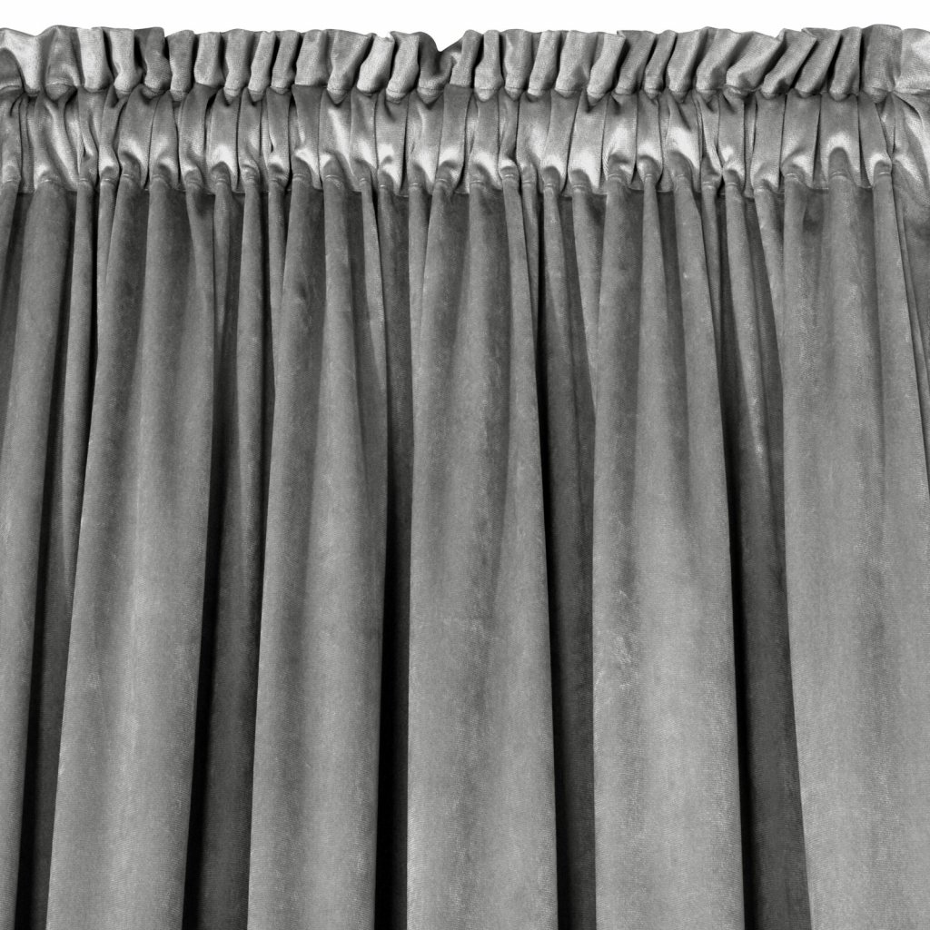 Měkký závěs z jednobarevného sametu s charakteristickým sametovým leskem. Měkká tkanina poskytuje interiéru vysoký stupeň stínění. Šířka: 140 cm, délka: 300 cm, barva: stříbrná, hmotnost: 215 GSM, složení: 100 % polyesterDoplňkové parametry