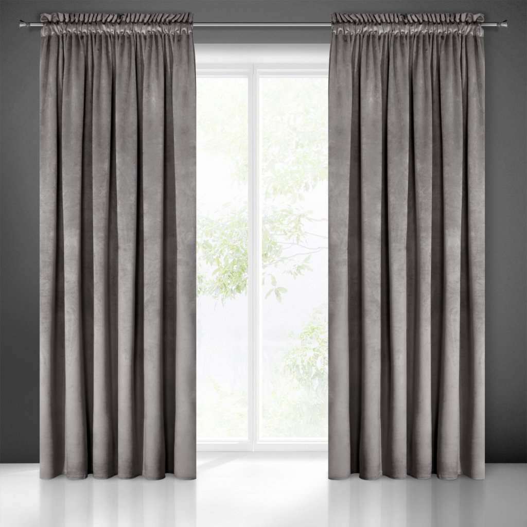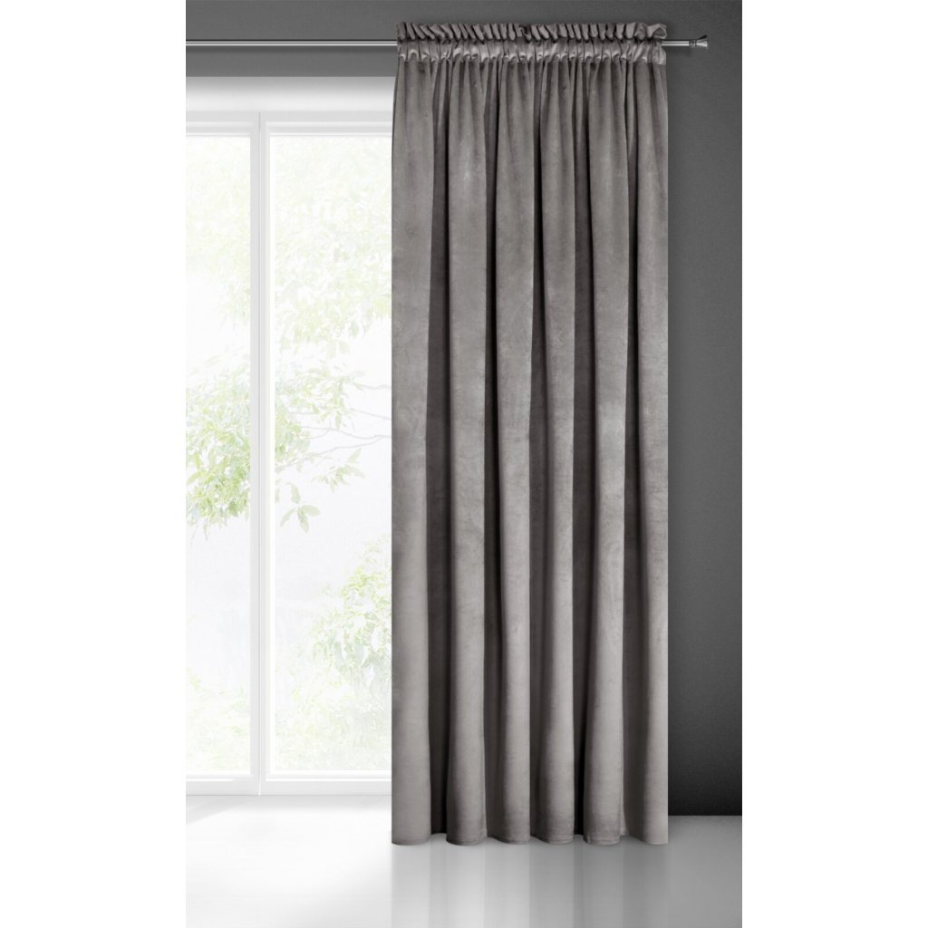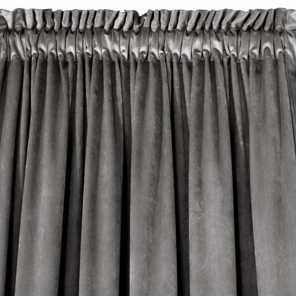 Měkký závěs z jednobarevného sametu s charakteristickým sametovým leskem. Měkká tkanina poskytuje vysoký stupeň vnitřního stínění. Šířka: 140 cm, Délka: 300 cm, Barva: šedá, Hmotnost: 215 GSM, Složení: 100 % polyesterDoplňkové parametry