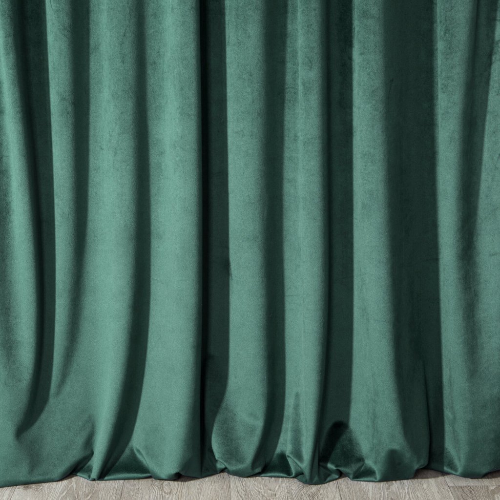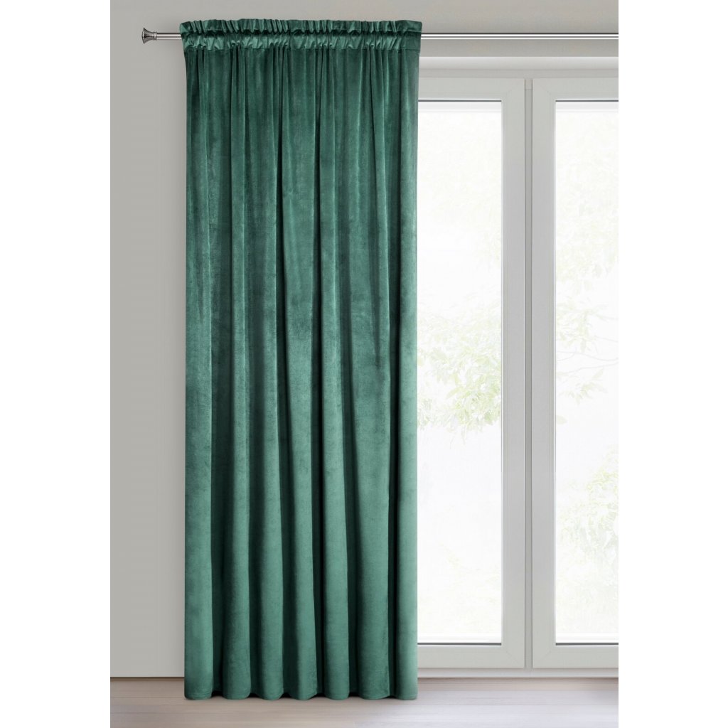 Měkký závěs z jednobarevného sametu s charakteristickým sametovým leskem. Měkká tkanina poskytuje interiéru vysoký stupeň stínění. Šířka: 140 cm, Délka: 300 cm, Barva: tmavě zelená, Hmotnost: 215 GSM, Složení: 100 % polyesterDoplňkové parametry