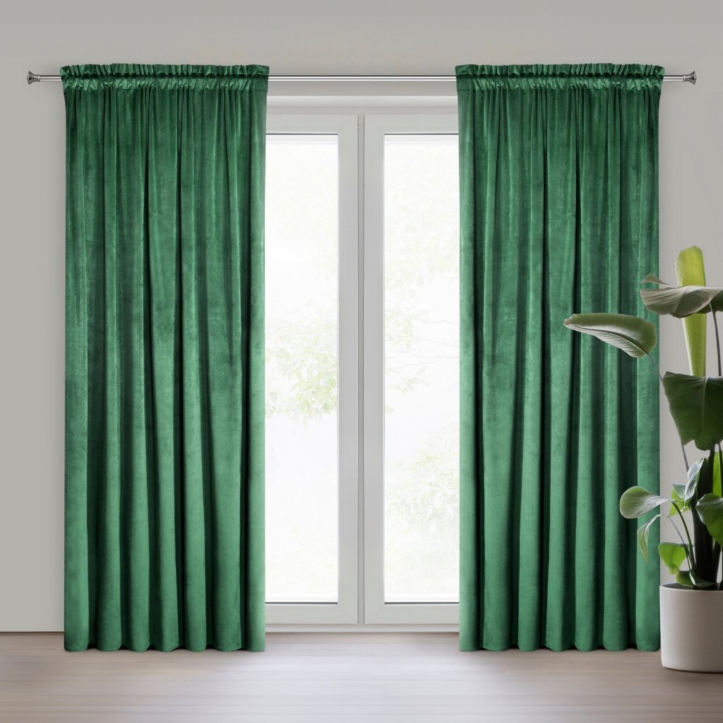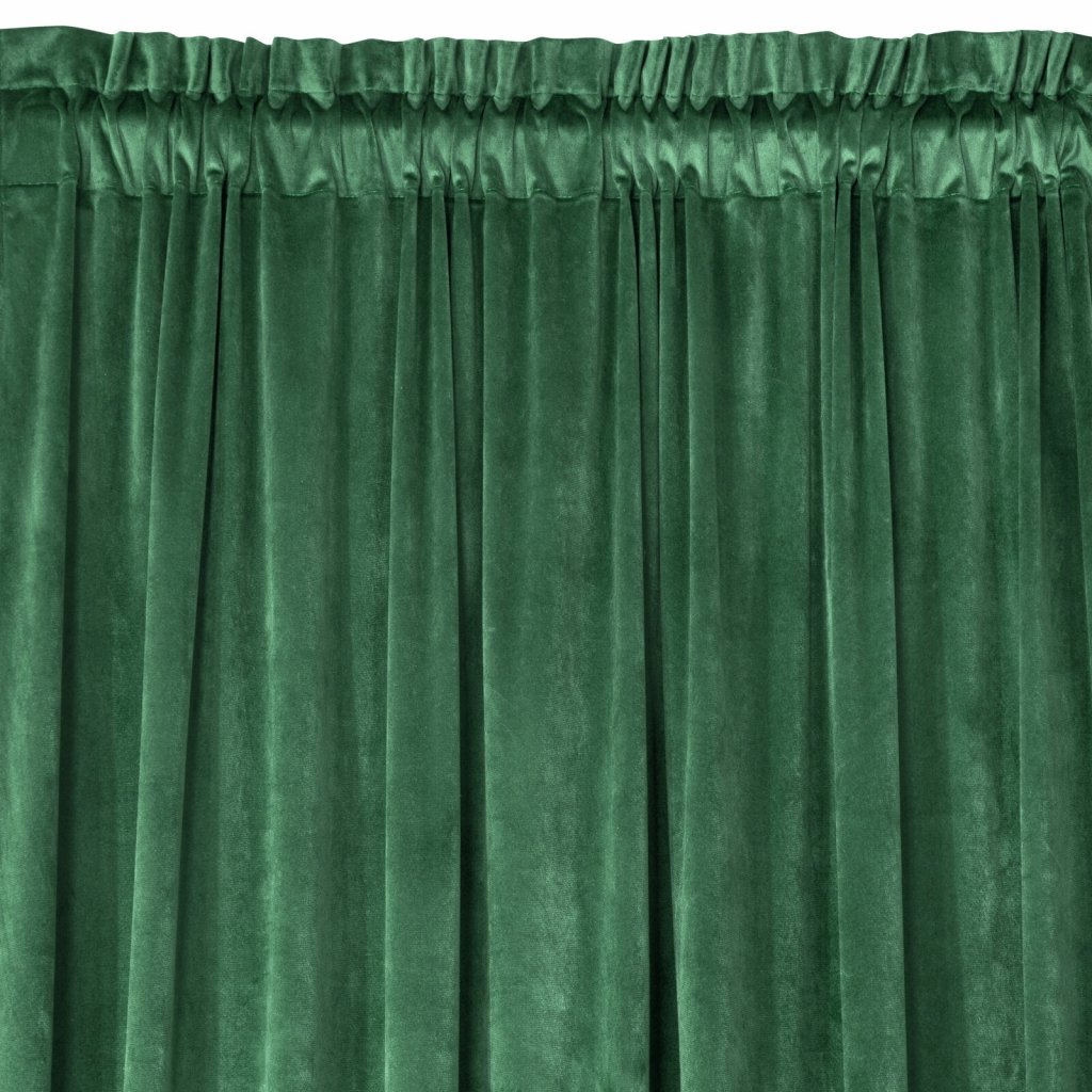 Měkký závěs z jednobarevného sametu s charakteristickým sametovým leskem. Měkká tkanina poskytuje vysoký stupeň vnitřního stínění. Šířka: 140 cm, délka: 300 cm, barva: tmavě zelená, hmotnost: 215 GSM, složení: 100 % polyesterDoplňkové parametry