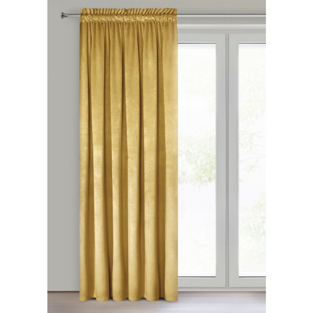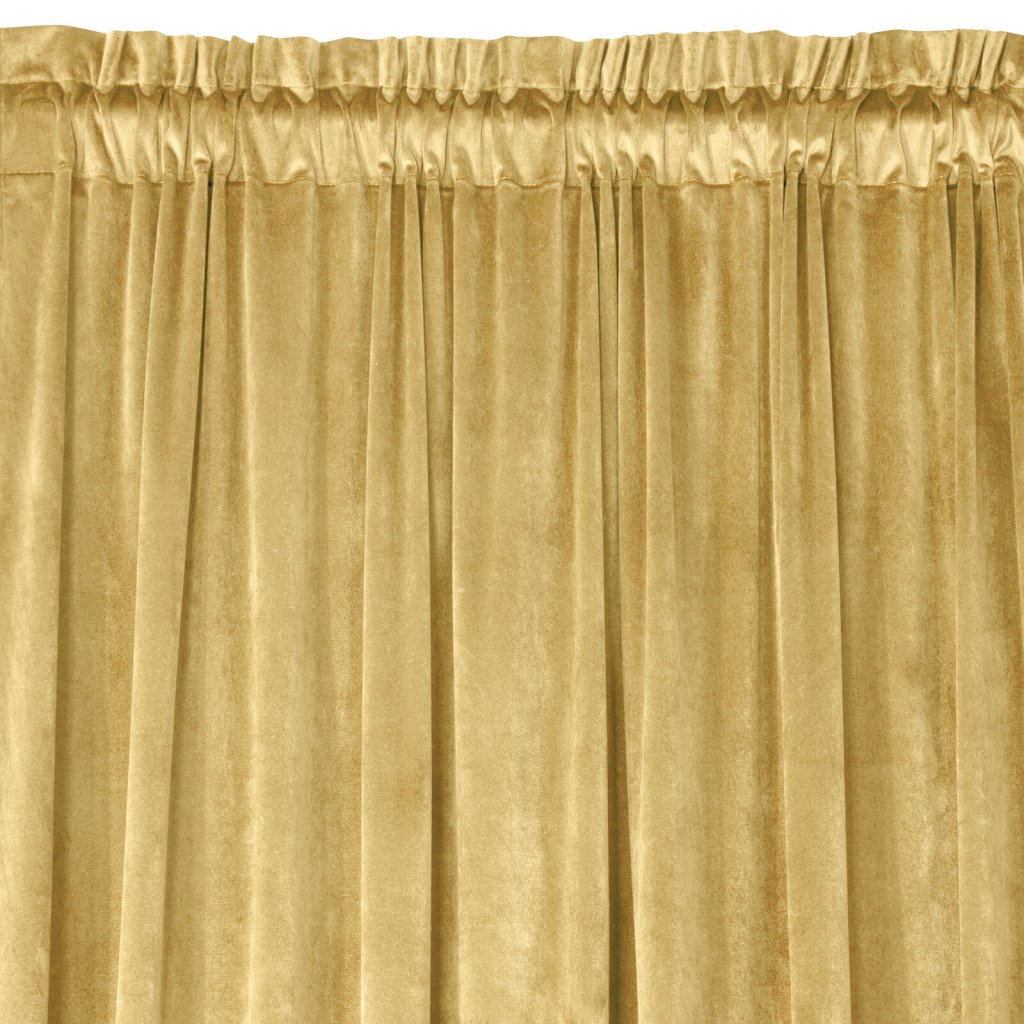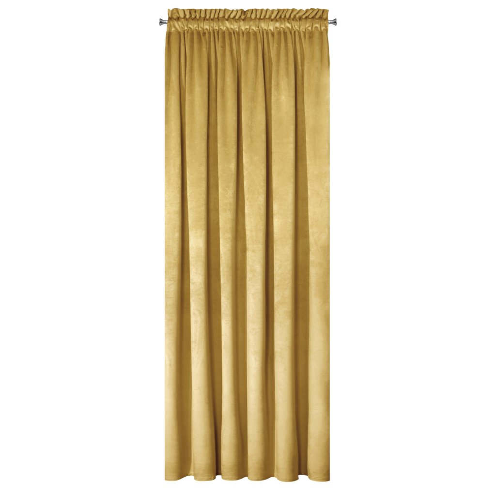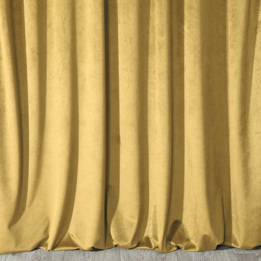 Měkký závěs z jednobarevného sametu s charakteristickým sametovým leskem. Měkká tkanina poskytuje vysoký stupeň vnitřního stínění. Šířka: 140 cm, délka: 300 cm, barva: zlatá, hmotnost: 215 GSM, složení: 100 % polyesterDoplňkové parametry
