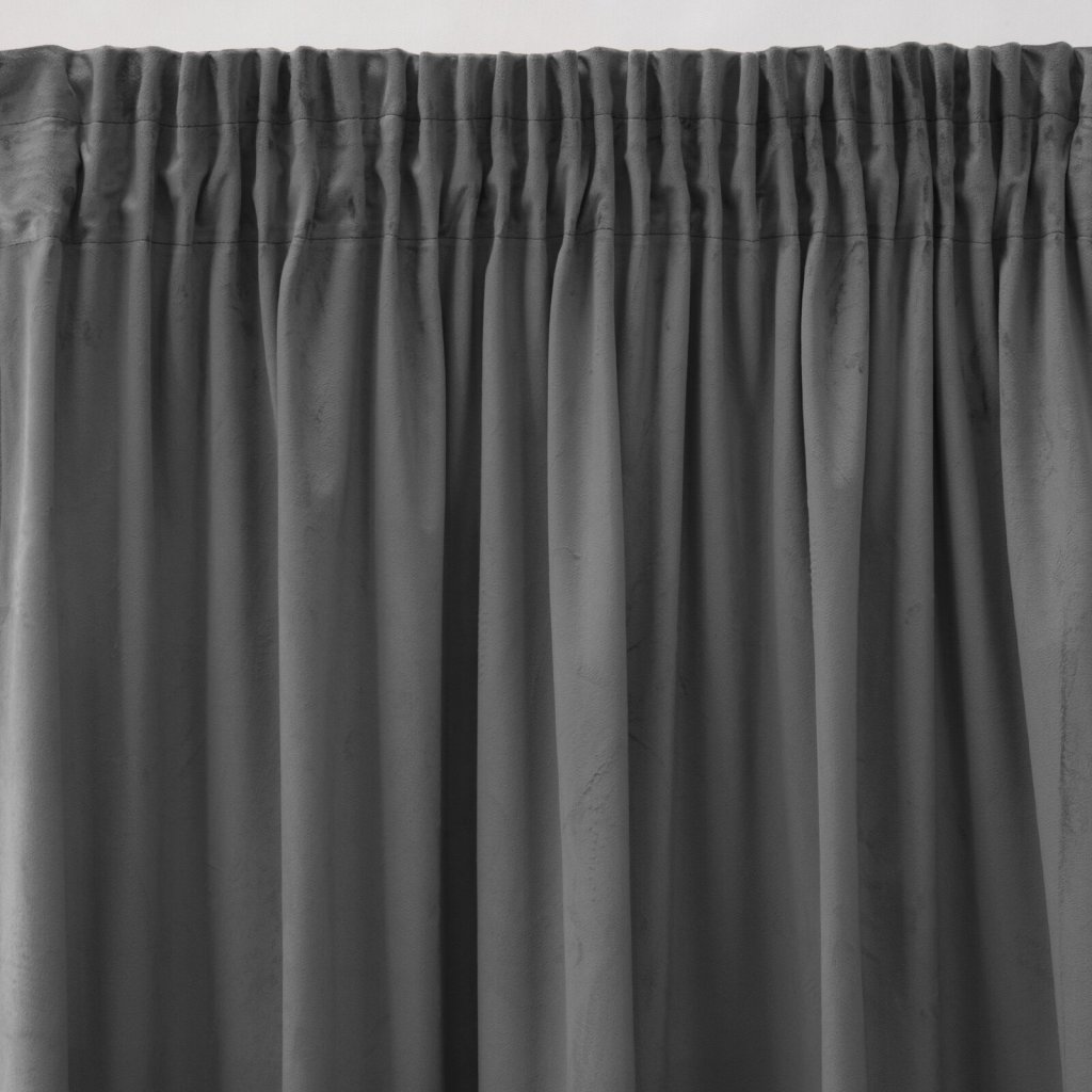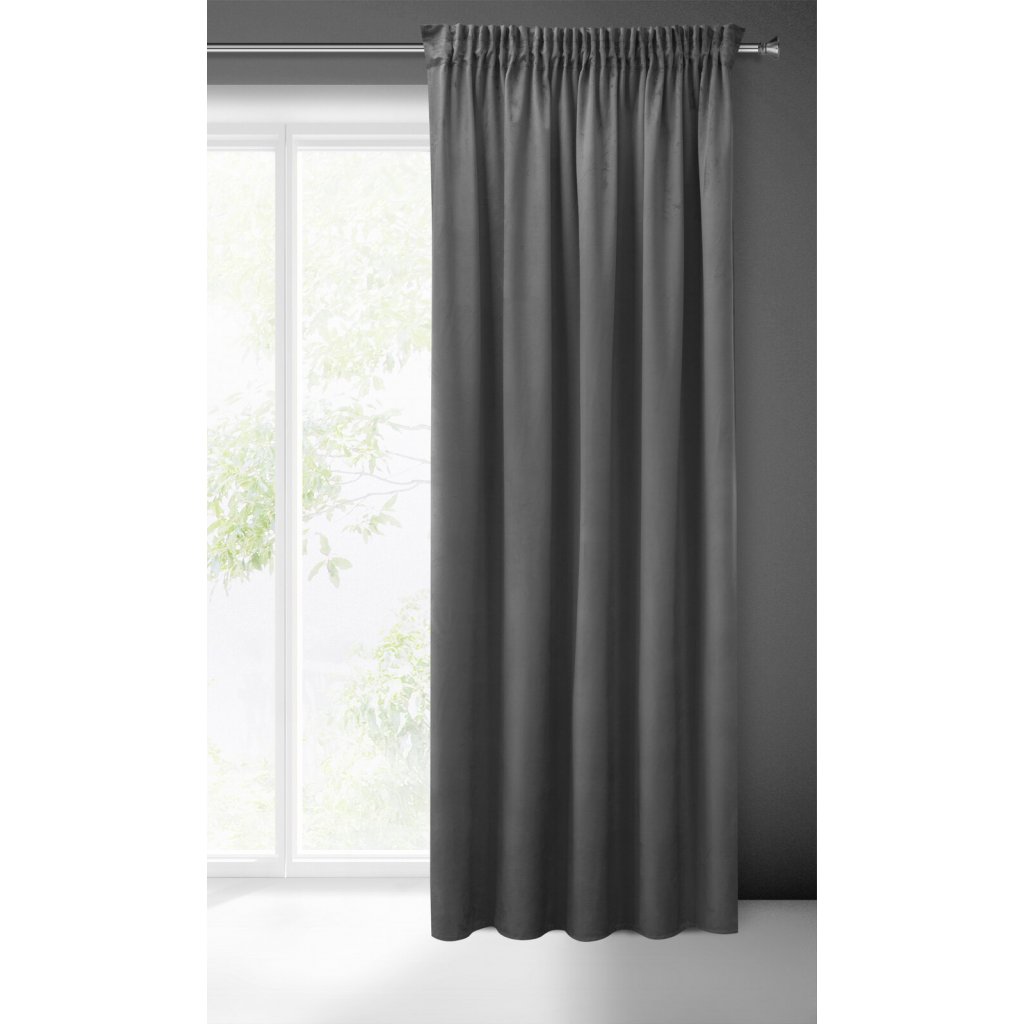 Jednobarevný sametový závěs z kolekce Pierre Cardin. Šířka: 140 cm, délka: 270 cm, barva: šedá, hmotnost: 260 GSM, složení: 100 % polyesterDoplňkové parametry
