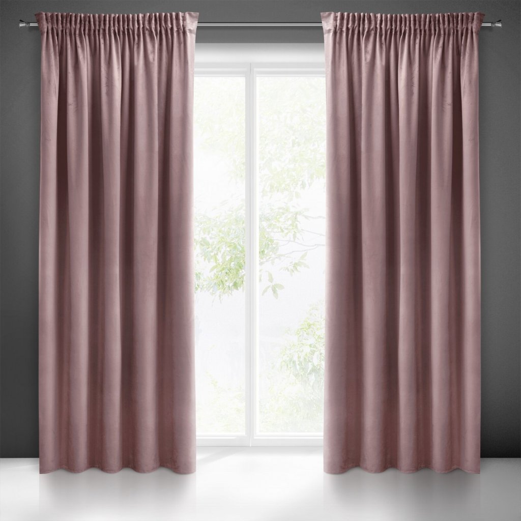 Jednobarevný sametový závěs z kolekce Pierre Cardin. Šířka: 140 cm, délka: 270 cm, barva: starorůžová, hmotnost: 260 GSM, složení: 100 % polyester: 100 % polyesterDoplňkové parametry