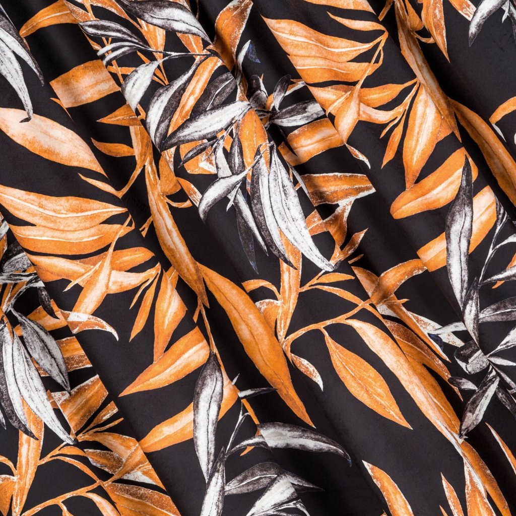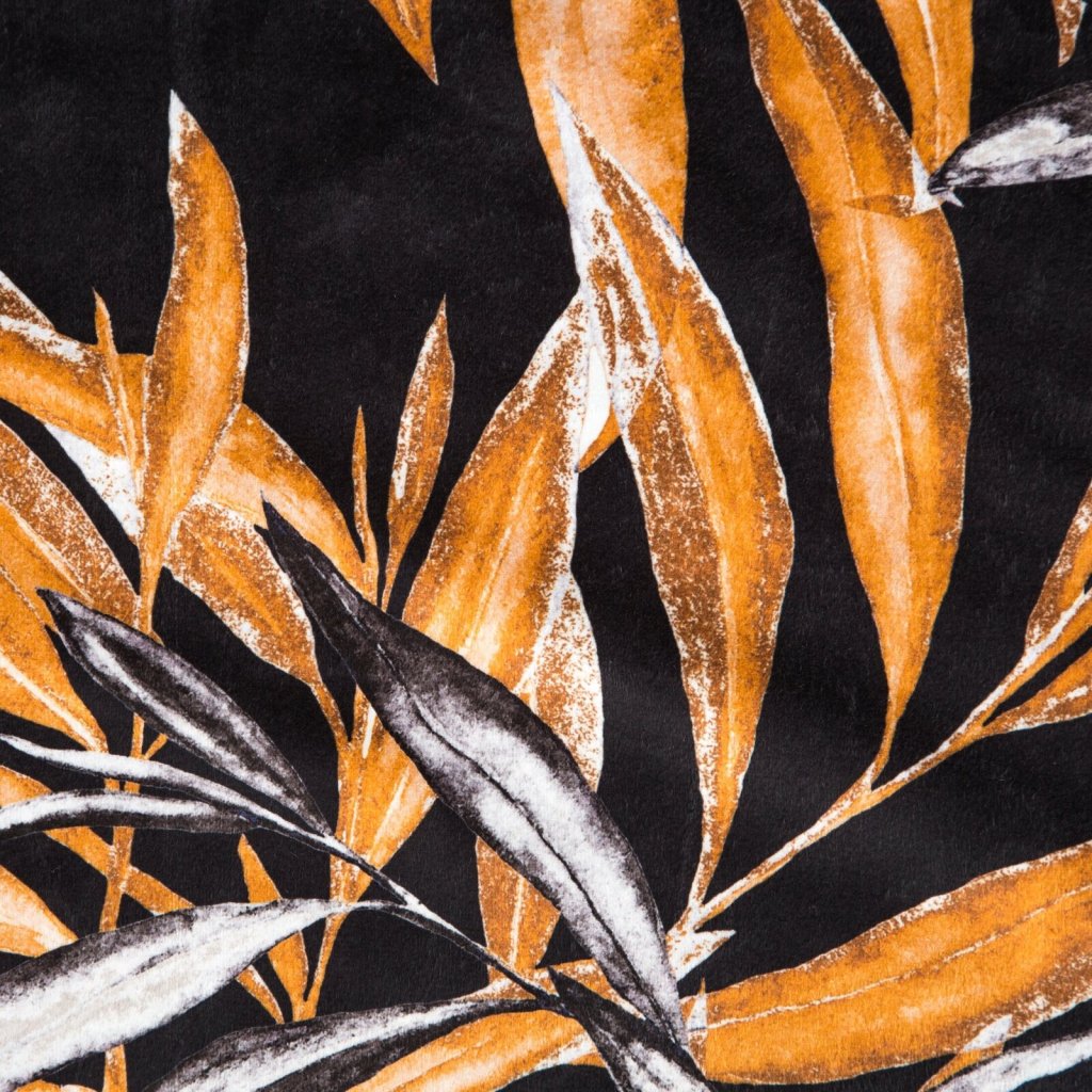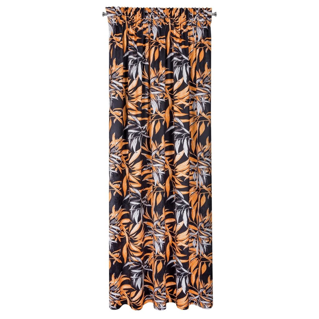 Sametový závěs z kolekce Pierre Cardin zdobený potiskem. Šířka: 140 cm, Délka: 270 cm, Barva: oranžová, Hmotnost: 200 GSM, složení: 100 % polyesterDoplňkové parametry