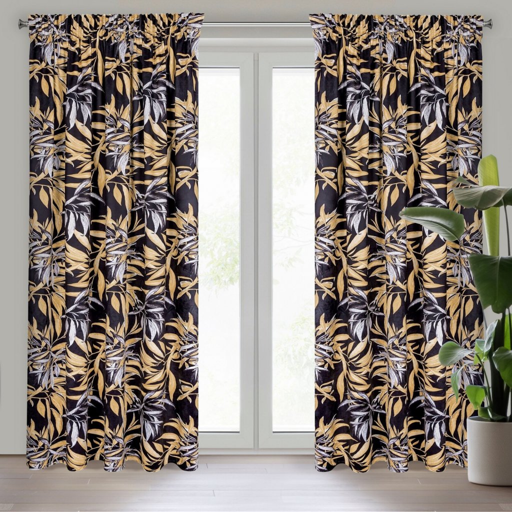 Sametový závěs z kolekce Pierre Cardin zdobený potiskem. Šířka: 140 cm, délka: 270 cm, barva: hnědá, hmotnost: 200 GSM, složení: 100 % polyesterDoplňkové parametry