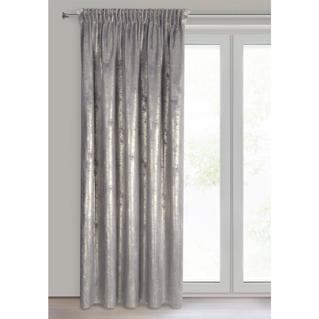 Hotový sametový závěs s lesklým potiskem v barvě šampaňské, šířka: 140 cm, délka: 270 cm, barva: vícebarevná, hmotnost: 200 GSM, složení: 100% polyester.Doplňkové parametry