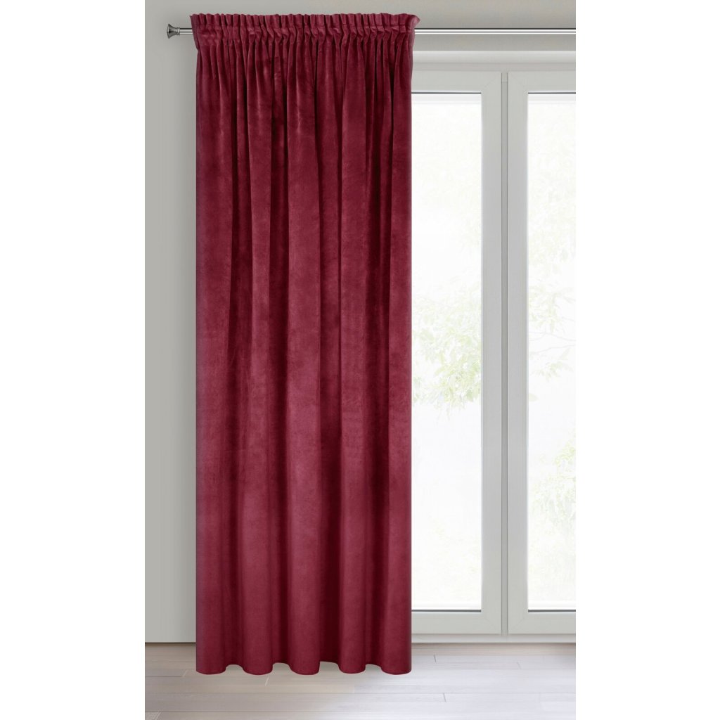 Sametový závěs má praktickou tunelovou pásku pro zavěšení šířka: 140 cm, délka: 270 cm, barva: bordó, hmotnost: 290 GSM, složení: 100 % polyesterDoplňkové parametry