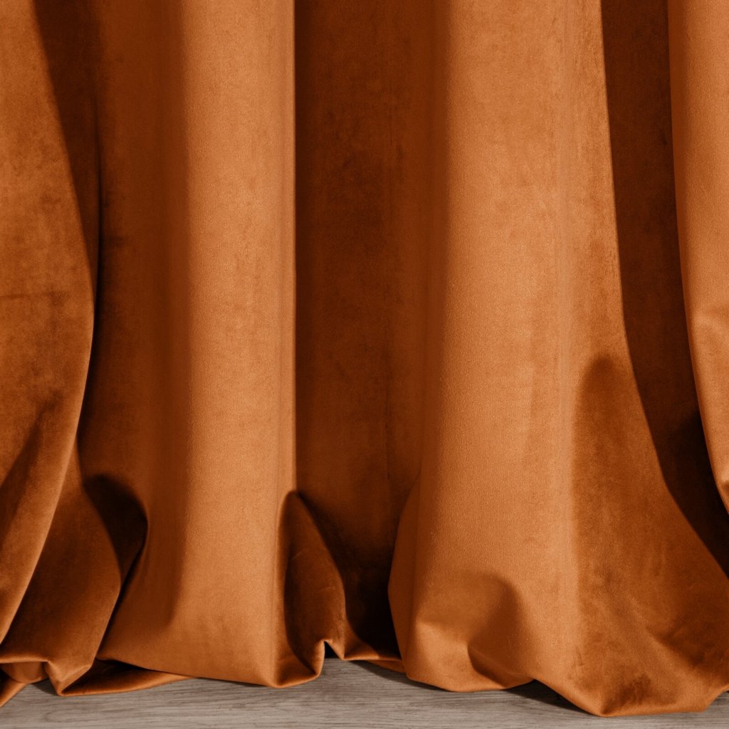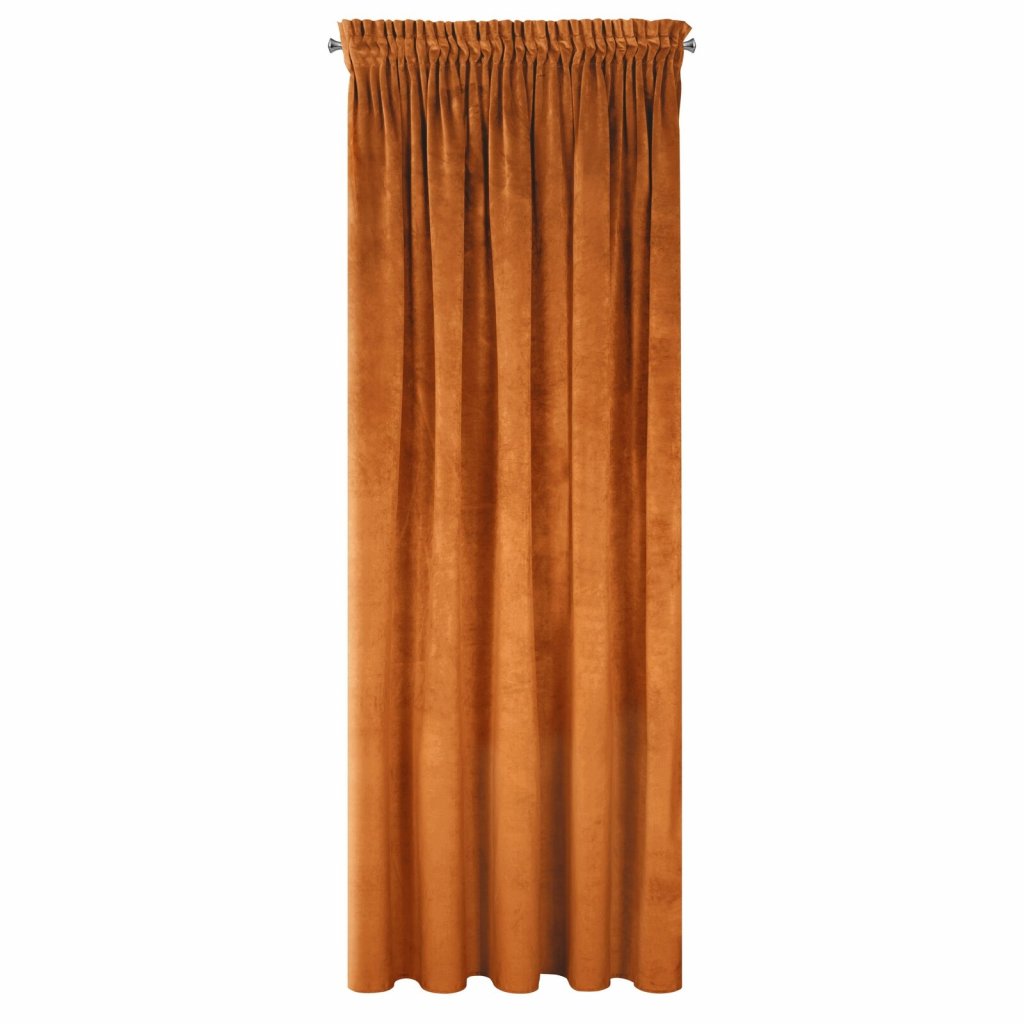 Sametový závěs má praktickou tunelovou pásku pro zavěšení šířka: 140 cm, délka: 270 cm, barva: oranžová, hmotnost: 290 GSM, složení: 100 % polyesterDoplňkové parametry