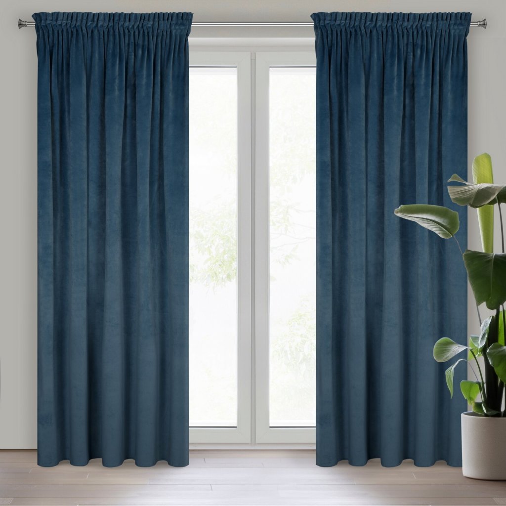 Sametový závěs má praktickou tunelovou pásku k zavěšení. šířka: 140 cm, délka: 270 cm, barva: tmavě modrá, hmotnost: 290 GSM, složení: 100 % polyesterDoplňkové parametry