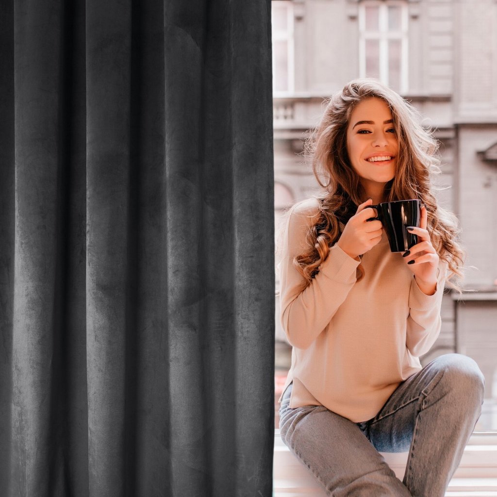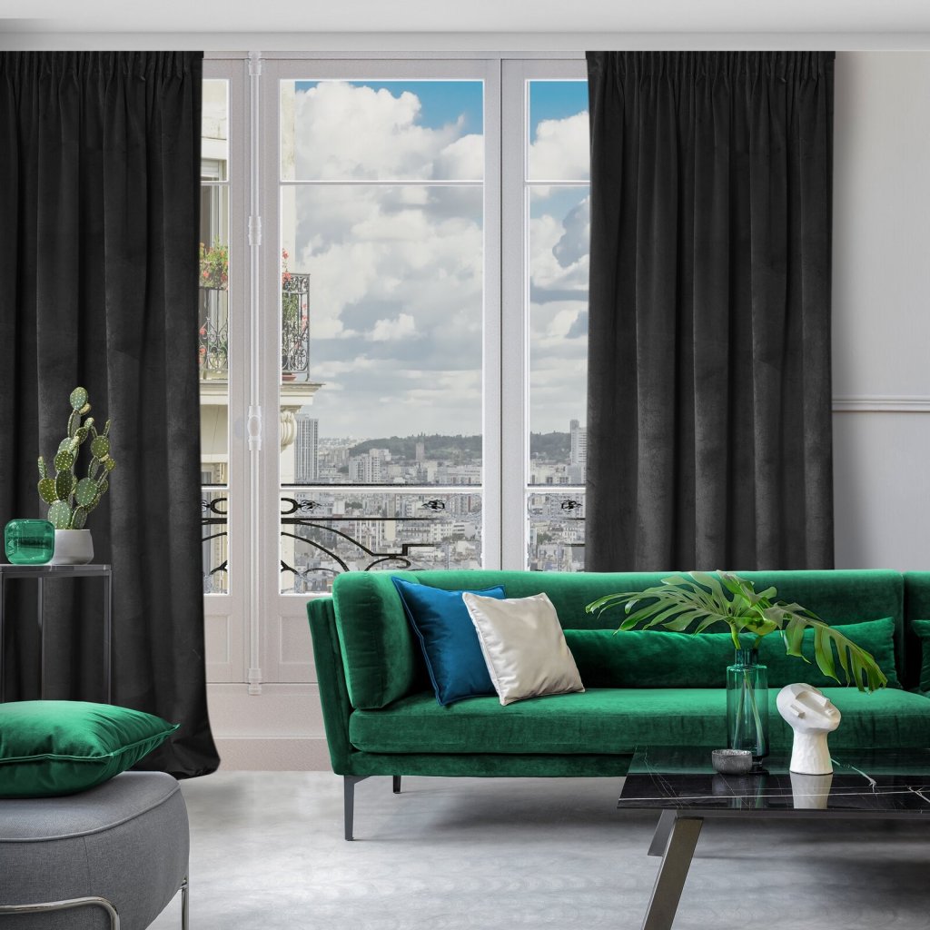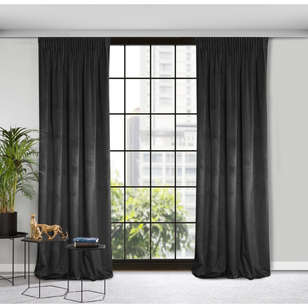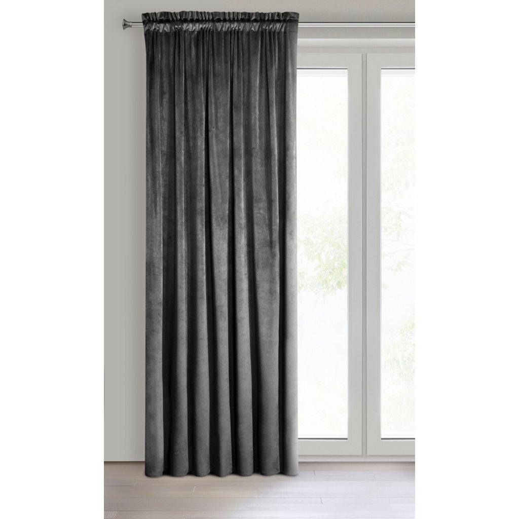 Jednobarevný sametový závěs, šířka: 135 cm, délka: 300 cm, barva: černá, hmotnost: 200 GSM, složení: 100% polyester.Doplňkové parametry