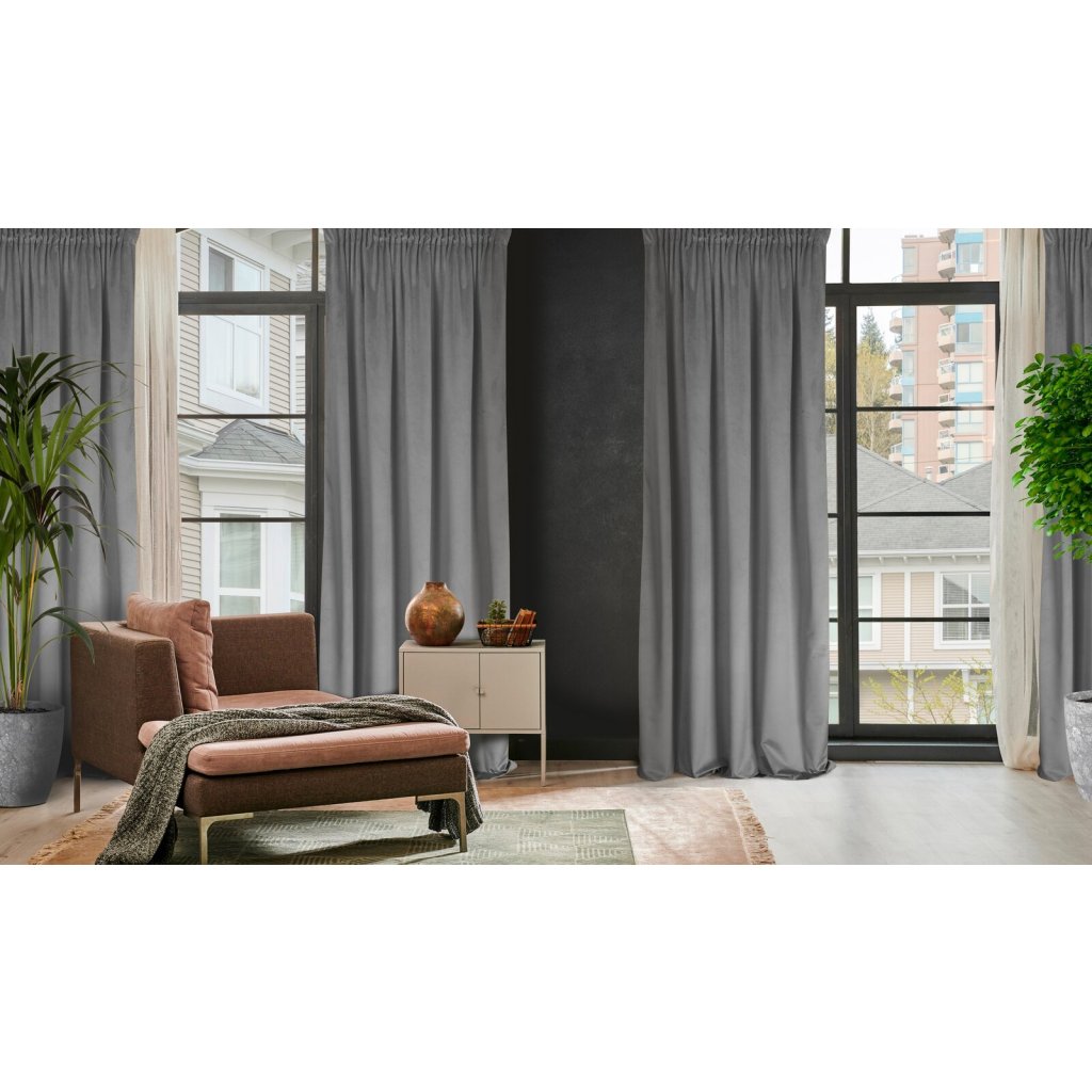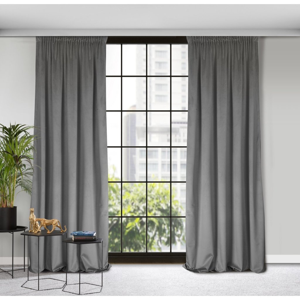 Jednobarevný sametový závěs šířka: 135 cm, délka: 300 cm, barva: šedá, hmotnost: 200 GSM, složení: 100 % polyesterDoplňkové parametry