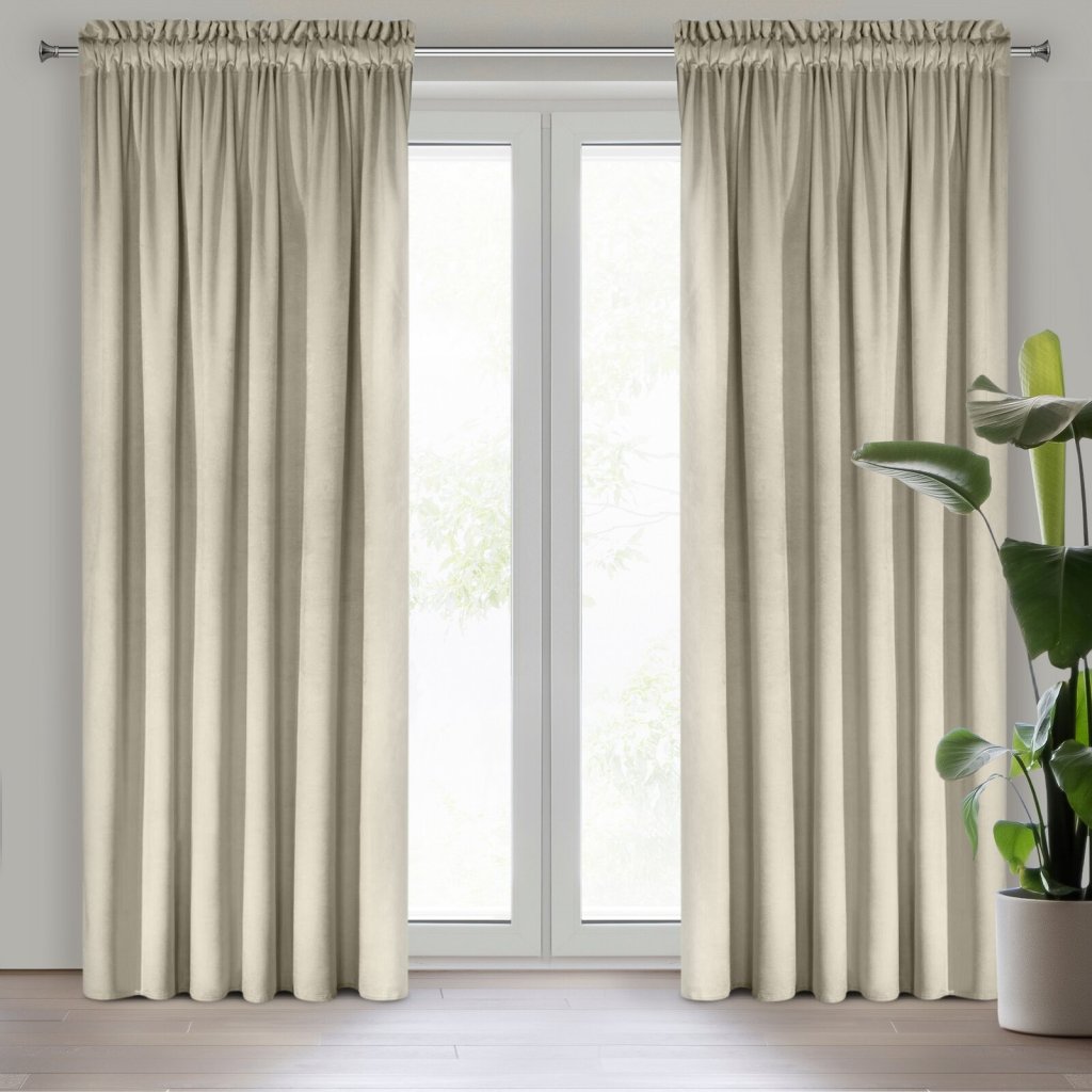 Jednobarevný sametový závěs, šířka: 140 cm, délka: 270 cm, barva: béžová, hmotnost: 200 GSM, složení: 100% polyester.Doplňkové parametry