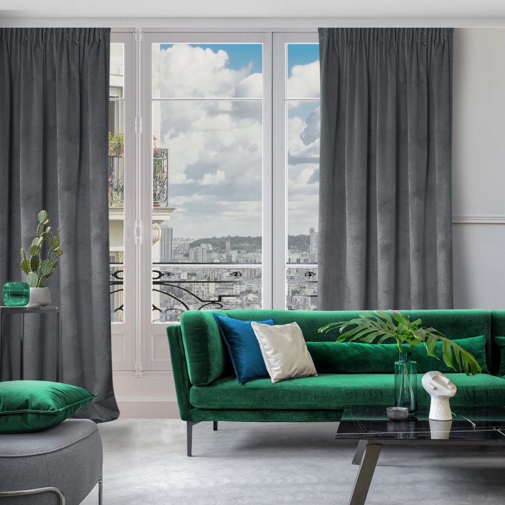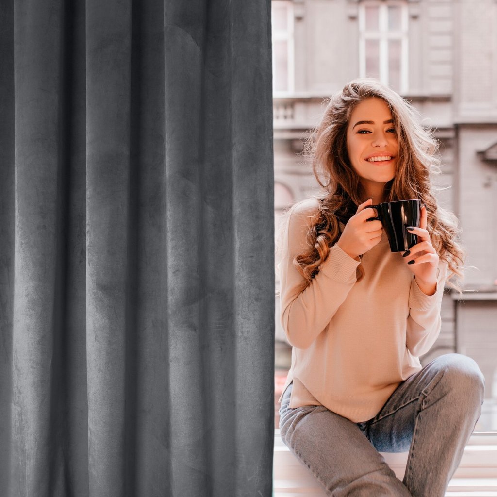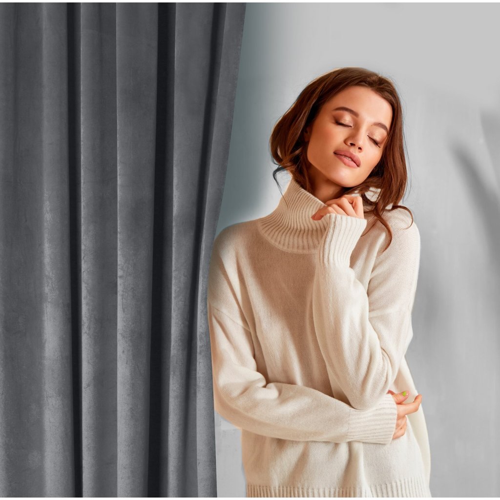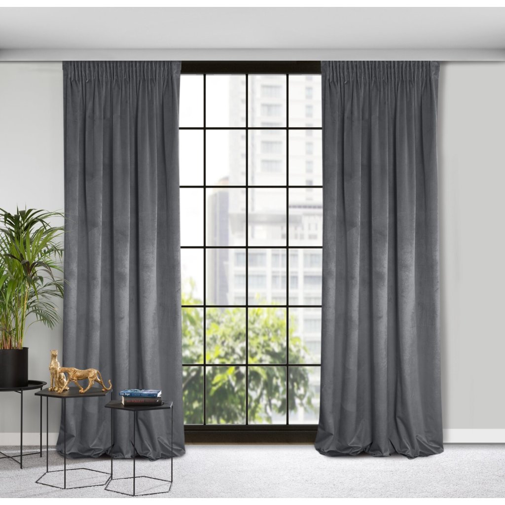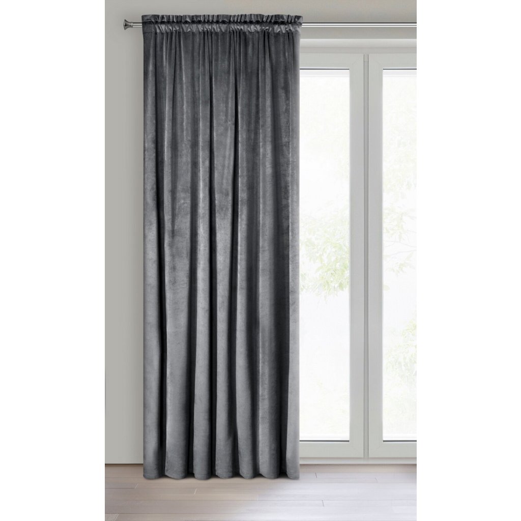 Jednobarevný sametový závěs, šířka: 140 cm, délka: 270 cm, barva: grafitová, hmotnost: 200 GSM, složení: 100% polyester.Doplňkové parametry
