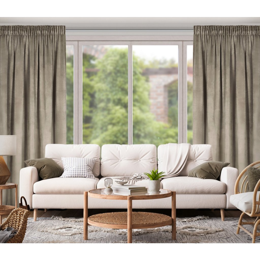 Jednobarevný, zatemňovací a sametový závěs na řasící pásce, šířka: 140 cm, délka: 270 cm, barva: hnědá, hmotnost: 200 GSM, složení: 100% polyester.Doplňkové parametry