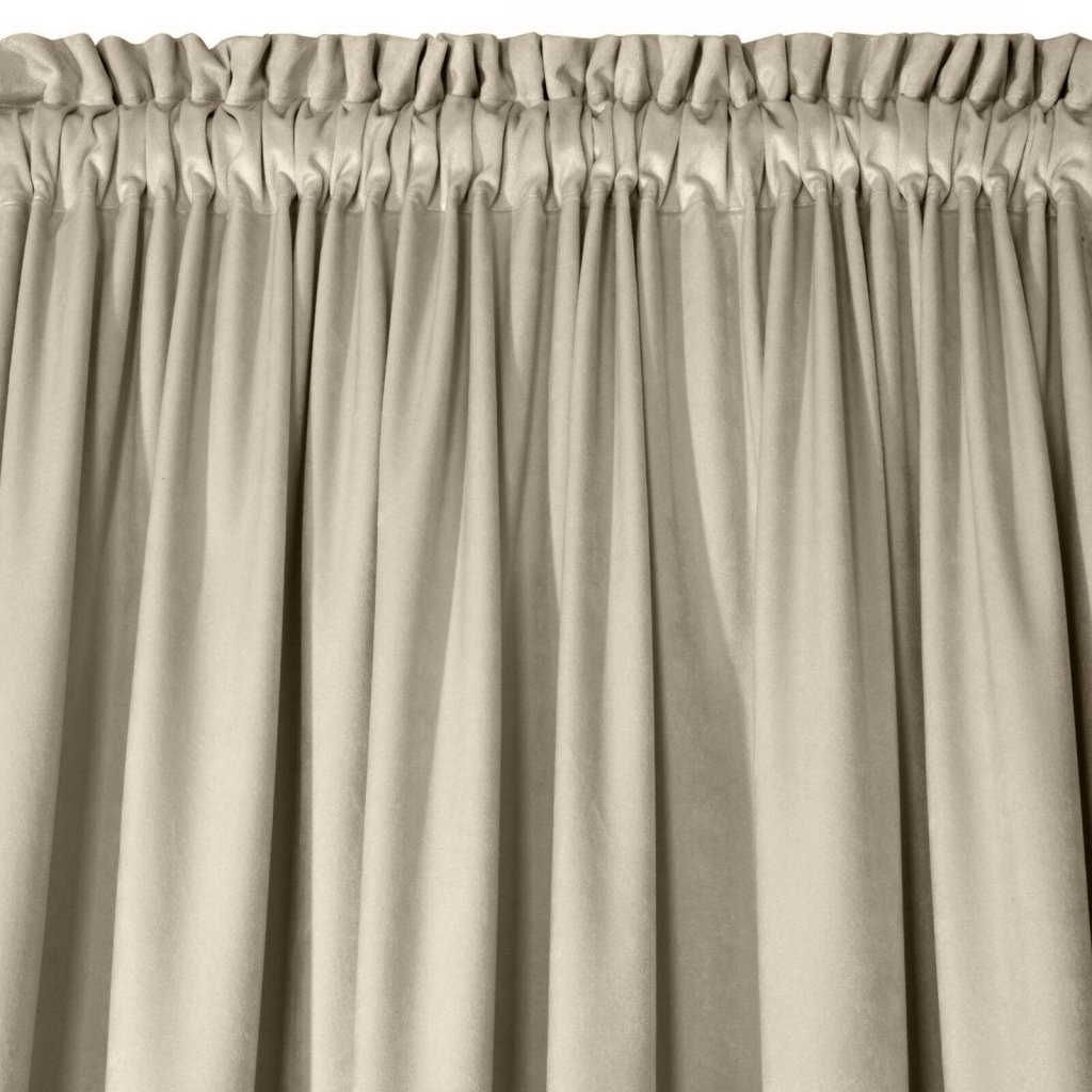 Jemný, sametový závěs s matným povrchem. Hrubá tkanina se středními vlastnostmi zatemnění dodává interiéru elegantní charakter. Šířka: 140 cm, délka: 270 cm, barva: světle béžová, hmotnost: 200 GSM, složení: 100% polyester.Doplňkové parametry