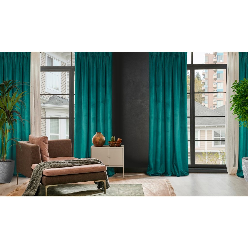 Jednobarevný sametový závěs, šířka: 140 cm, délka: 270 cm, barva: tmavě tyrkysová, hmotnost: 200 GSM, složení: 100% polyester.Doplňkové parametry