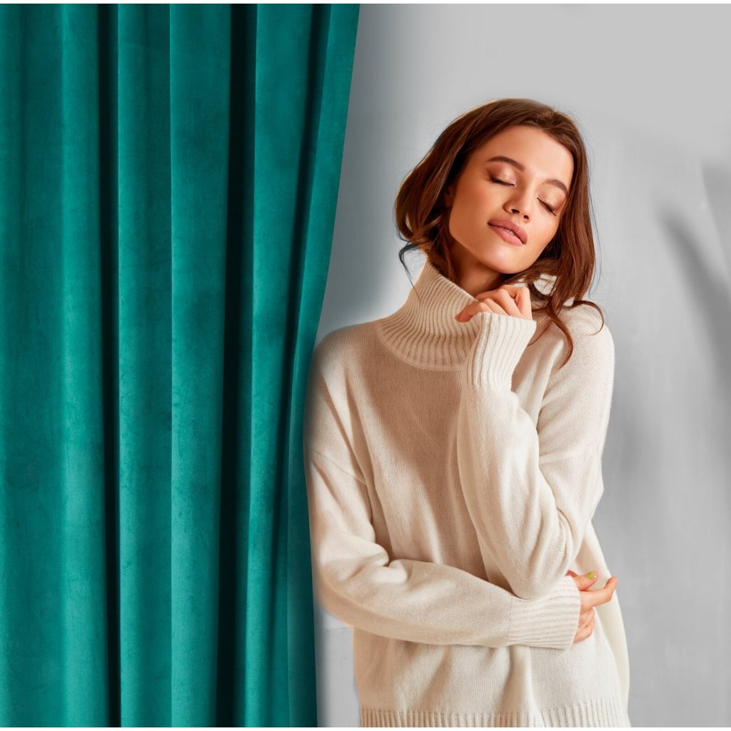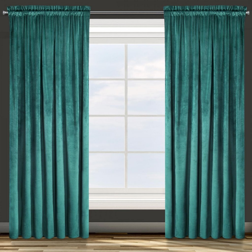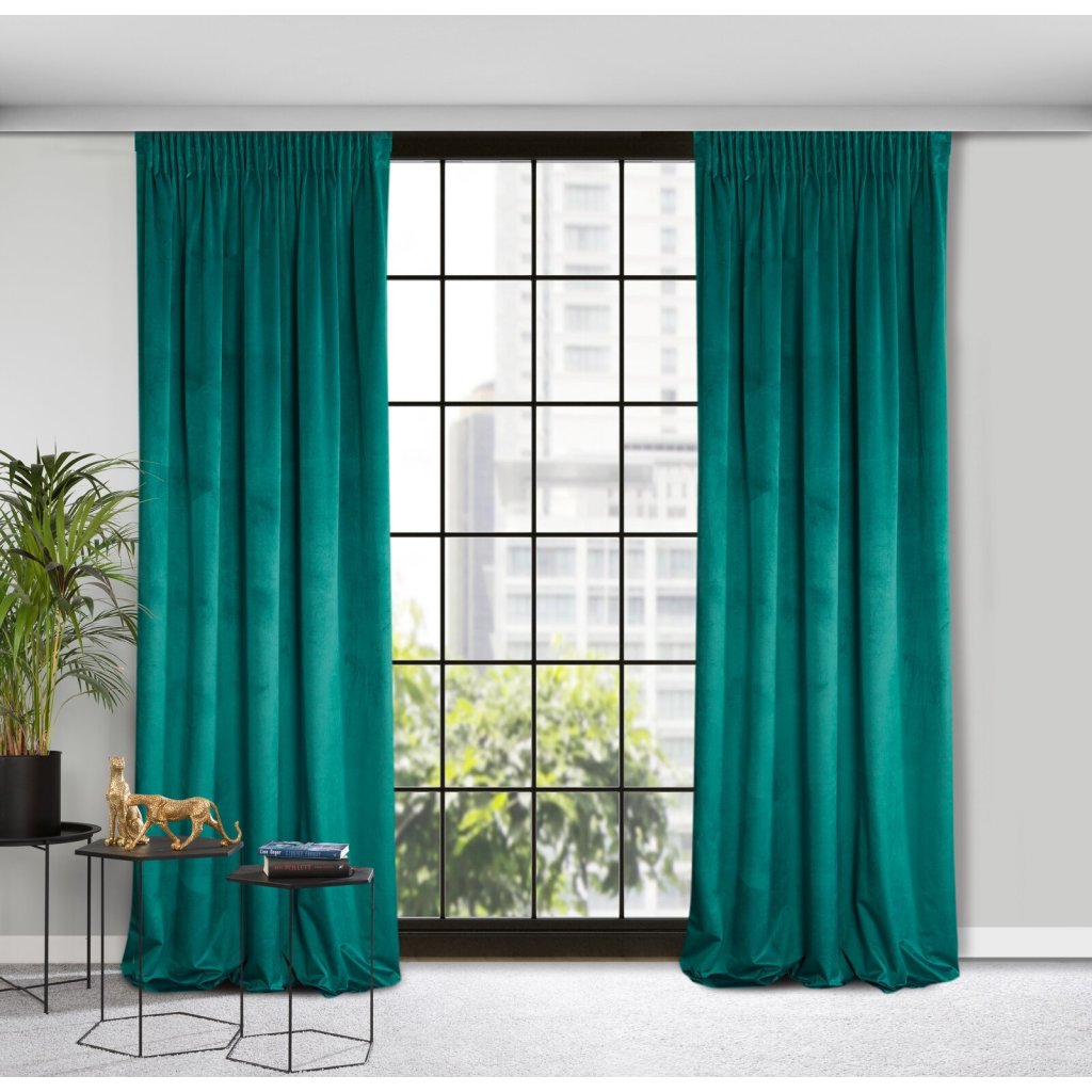 Jednobarevný sametový závěs, šířka: 140 cm, délka: 270 cm, barva: tyrkysová, hmotnost: 200 GSM, složení: 100% polyester.Doplňkové parametry