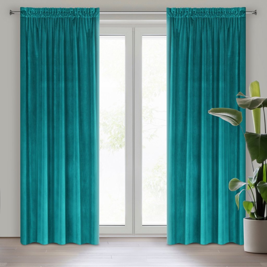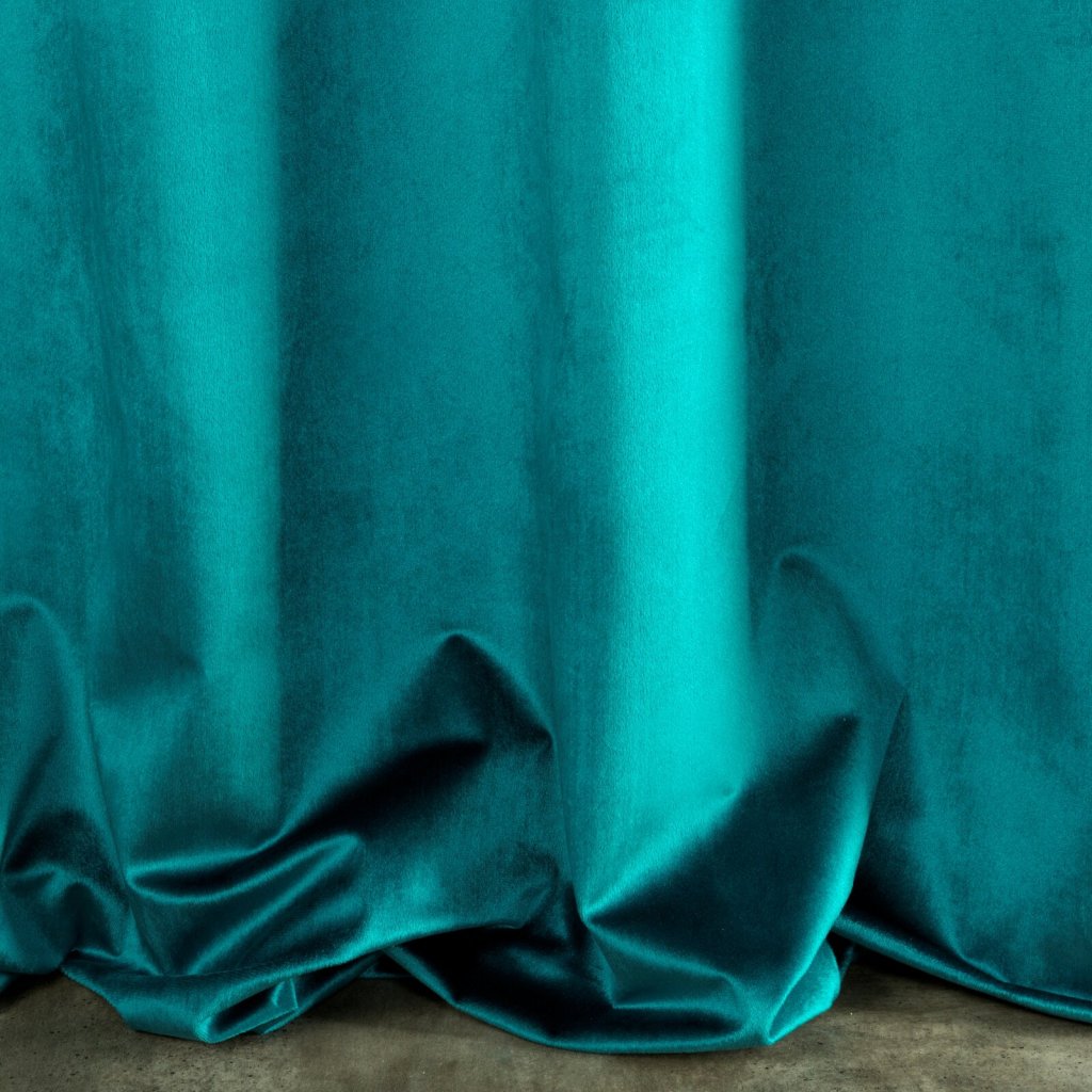 Lehký, sametový závěs z měkké látky s jemným leskem, charakteristickým pro samety. Jemně sedí. Žehlit naruby, šířka: 140 cm, délka: 270 cm, barva: tyrkysová, hmotnost: 190 GSM, složení: 100% polyester.Doplňkové parametry