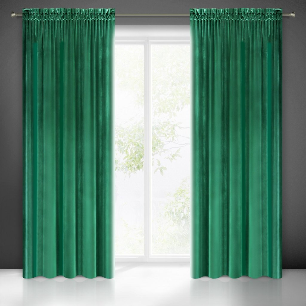 Lehký sametový závěs z měkké tkaniny s jemným leskem, který je charakteristický pro samety. Jemně vrstvené. Šířka: 140 cm, délka: 270 cm, barva: zelená, hmotnost: 190 GSM, složení: 100 % polyesterDoplňkové parametry