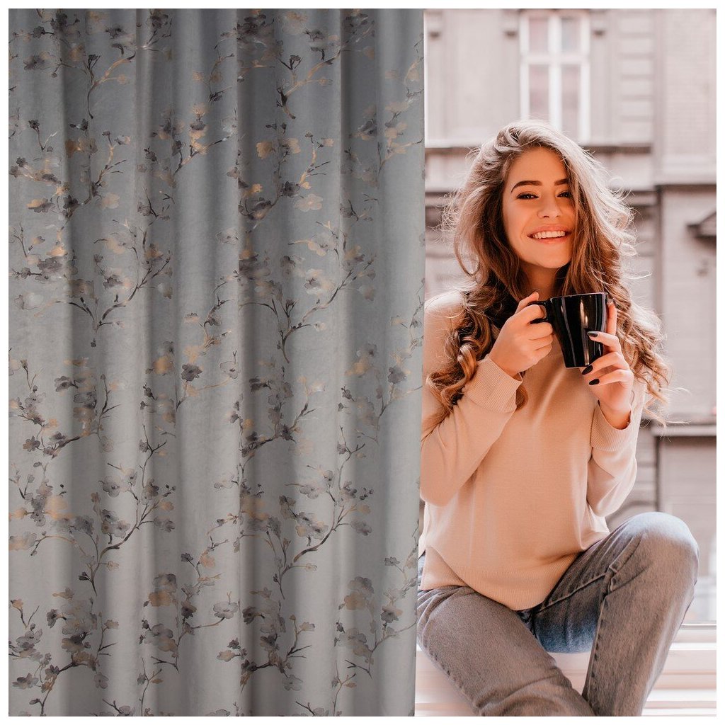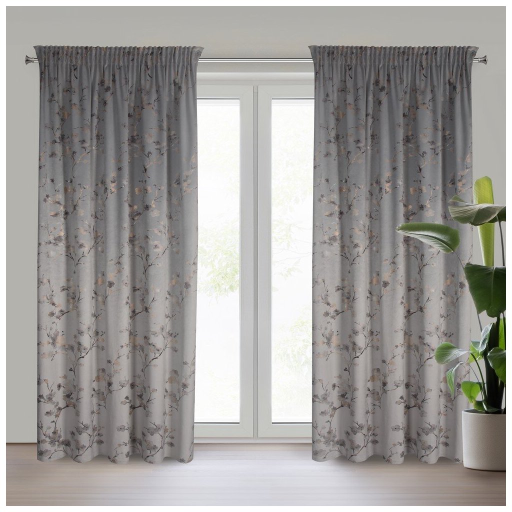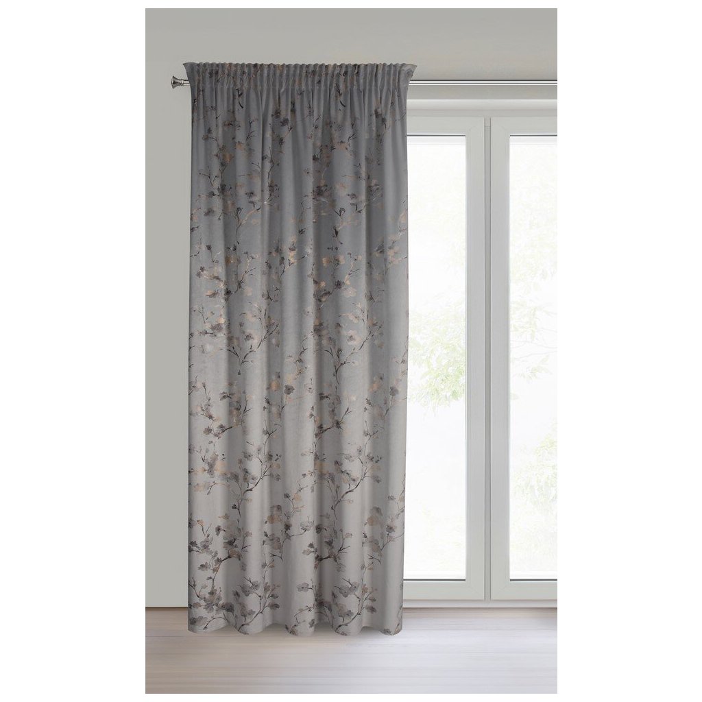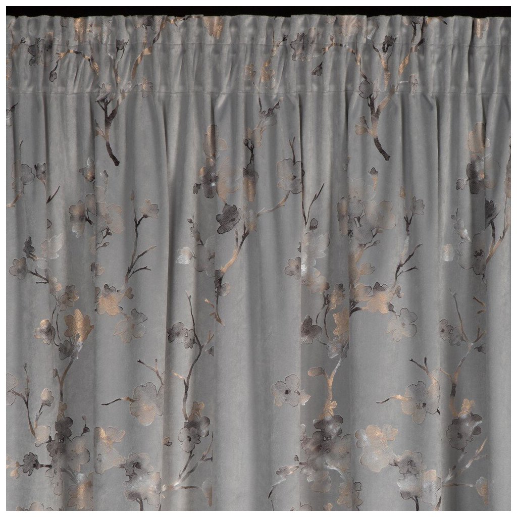 Hotový sametový závěs s lesklým potiskem květin, šířka: 140 cm, délka: 270 cm, barva: vícebarevná, gramáž: 200 GSM, složení: 100% polyester.Doplňkové parametry