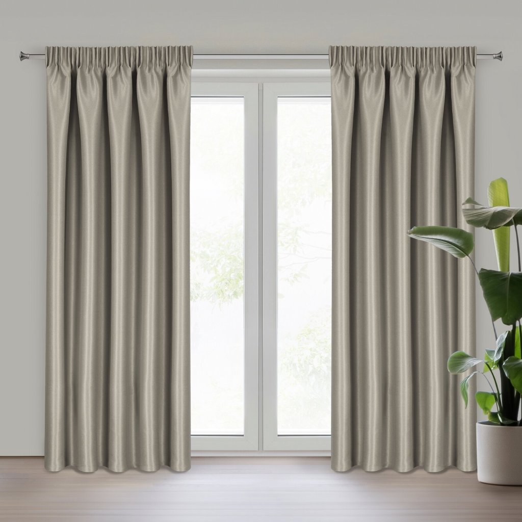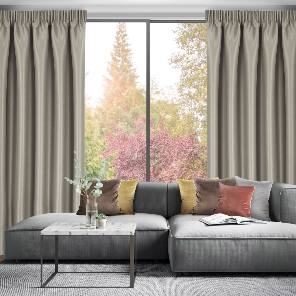 Zatemňovací závěs s lesklou nití, šířka: 140 cm, délka: 270 cm, barva: tmavě béžová, gramáž: 300 GSM, složení: 100% polyester.Doplňkové parametry