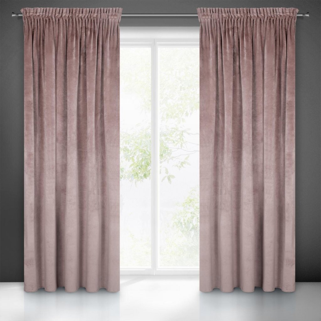 Hladký jednobarevný závěs z měkkého sametu se sametovým leskem. Páska na záhyby obsahuje tunel pro upevnění na záclonovou tyč. Šířka: 140 cm, Délka: 270 cm, Barva: pudrově růžová, Hmotnost: 290 GSM, Složení: 100 % polyesterDoplňkové parametry