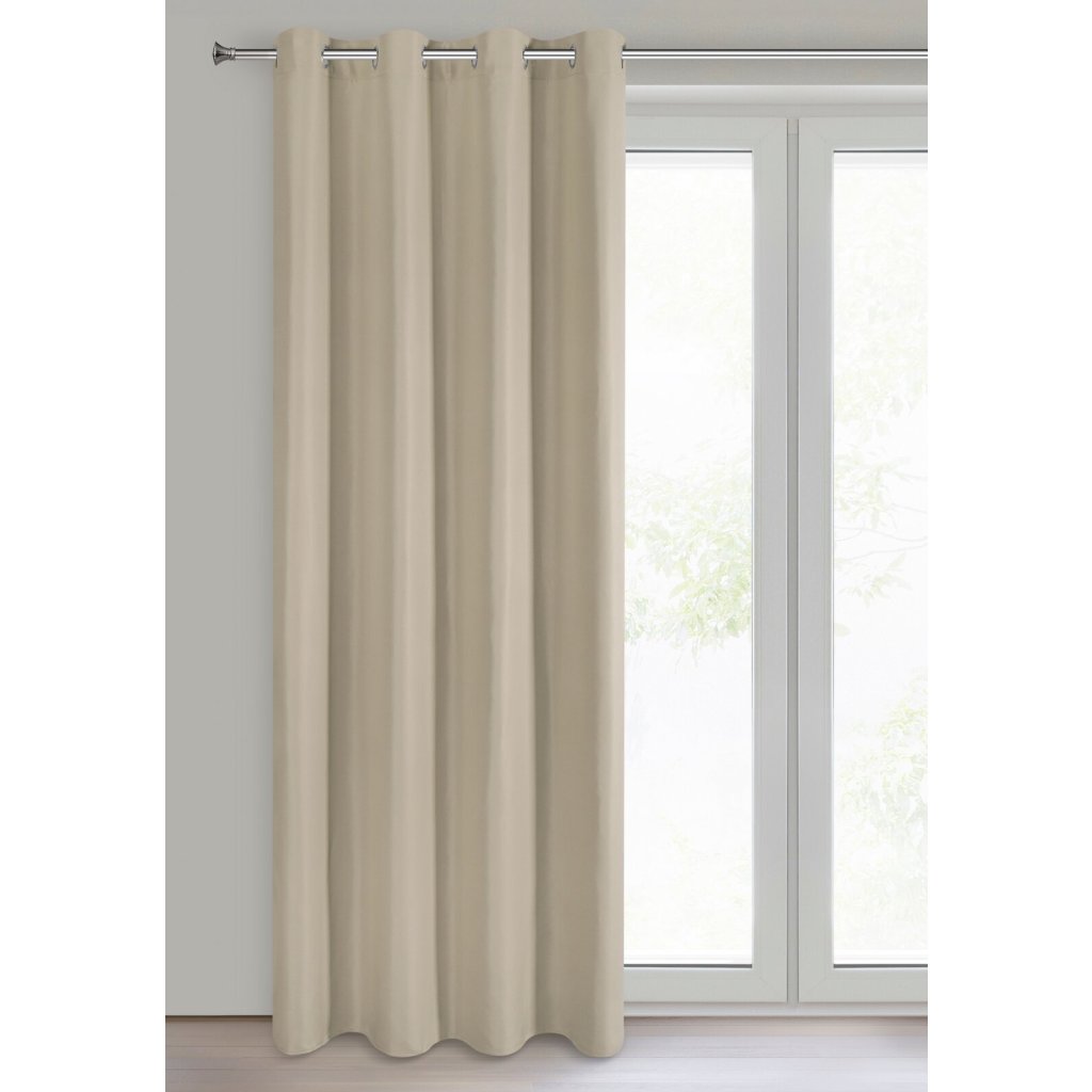 Jednobarevný matný hladký závěs, šířka: 140 cm, délka: 250 cm, barva: tmavě béžová, hmotnost: 75 GSM, složení: 100% polyester.Doplňkové parametry