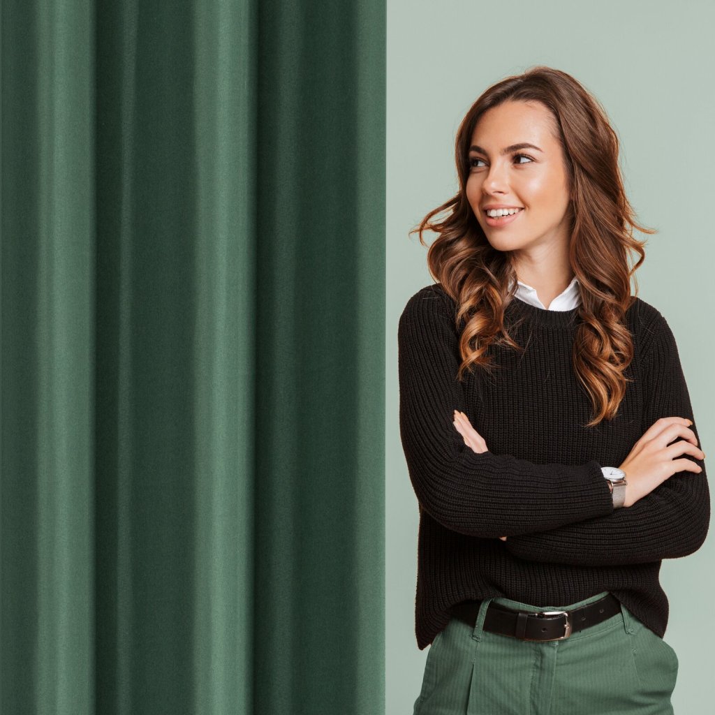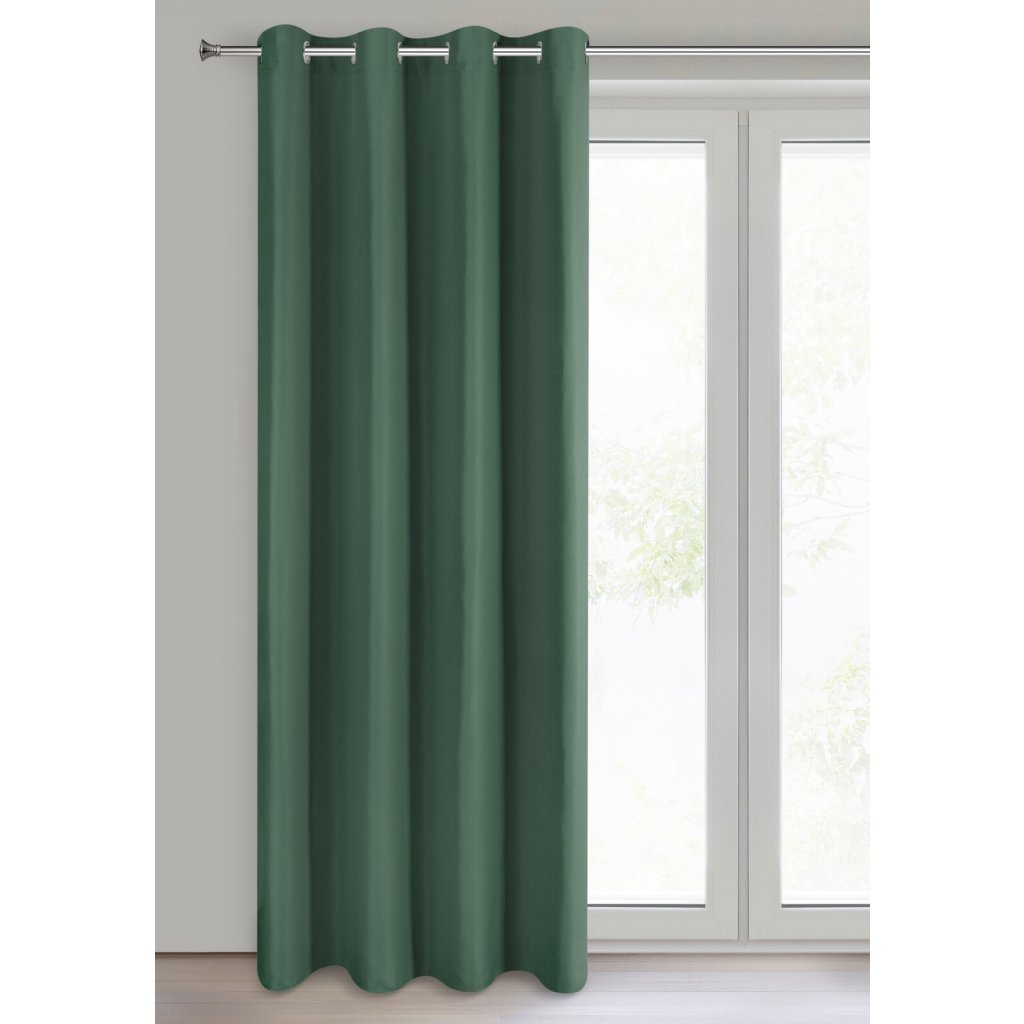 Jednobarevný matný hladký závěs, šířka: 140 cm, délka: 250 cm, barva: tmavě zelená, hmotnost: 75 GSM, složení: 100% polyester.Doplňkové parametry