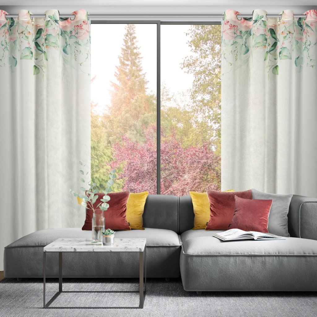 Hotový závěs z šifonu s květinovým potiskem, šířka: 135 cm, délka: 250 cm, barva: vícebarevná, gramáž: 90 GSM, složení: 100% polyester.Doplňkové parametry