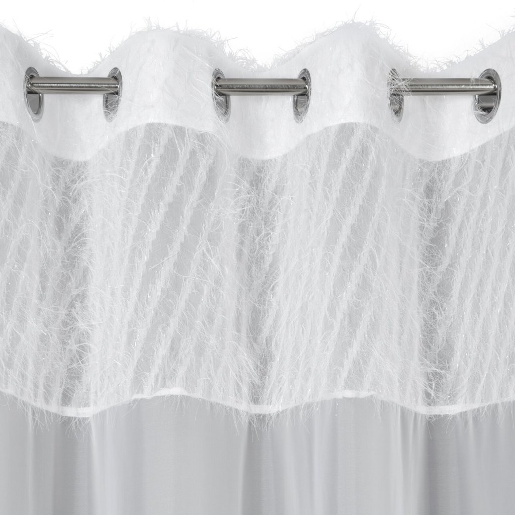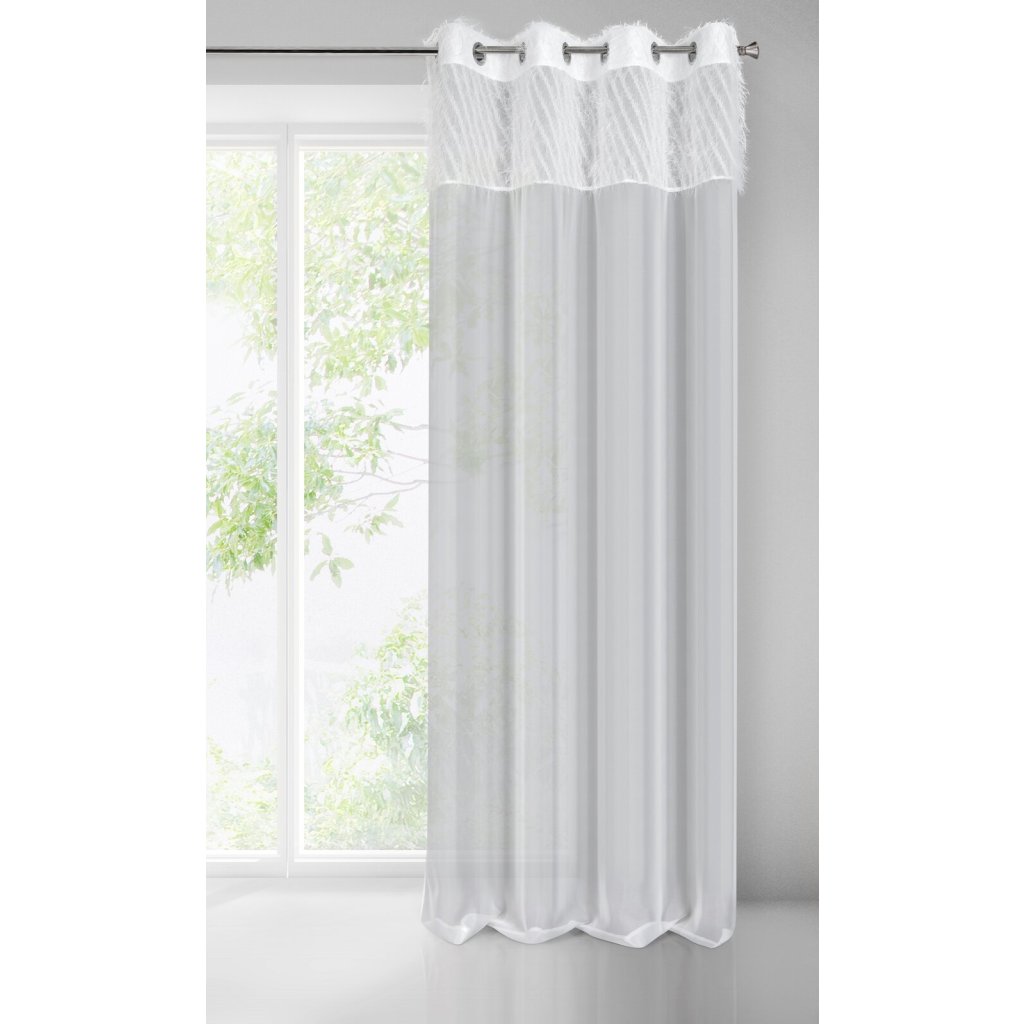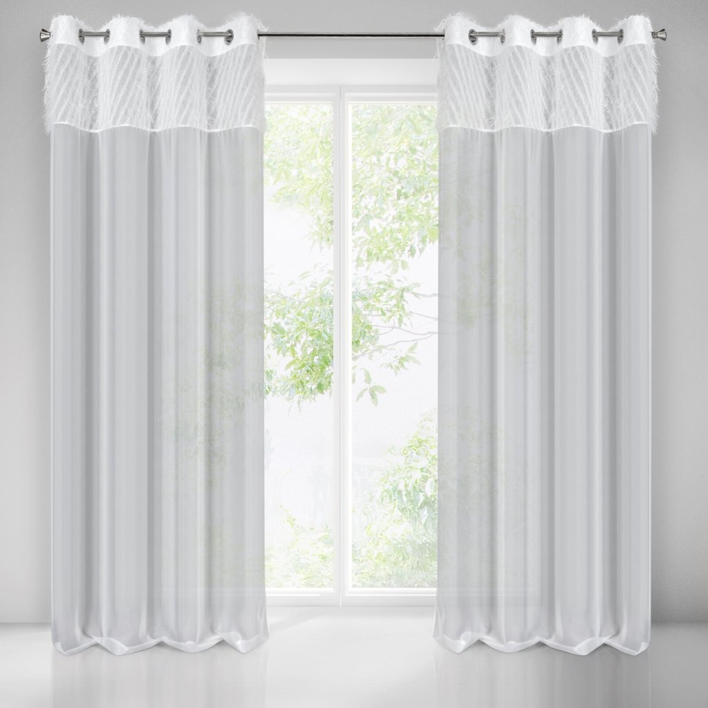 Jemný závěs kombinující široký pás krepového sametu s lehkým voálem spojením látek. Je to velice elegantní a jemná dekorace na okno. šířka: 140 cm, délka: 250 cm, barva: bílá, složení: 100 % polyesterDoplňkové parametry