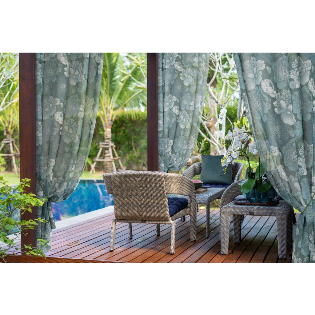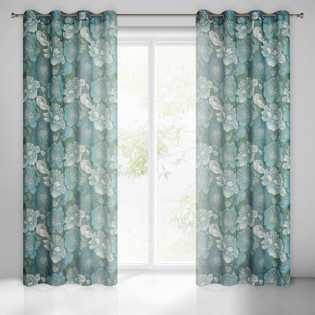 Klasický textilní závěs s plátěnou strukturou zdobený pastelovým potiskem zahradních květin. Střední úroveň stínění. Tkanina se lehce žehlí. Šířka: 140 cm, délka: 250 cm, barva: modrá, hmotnost: 130 GSM, složení: 100 % polyesterDoplňkové parametry