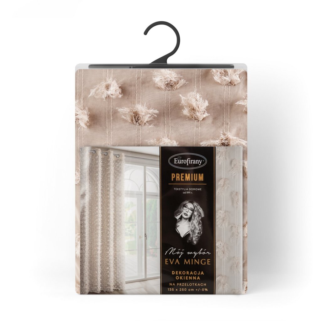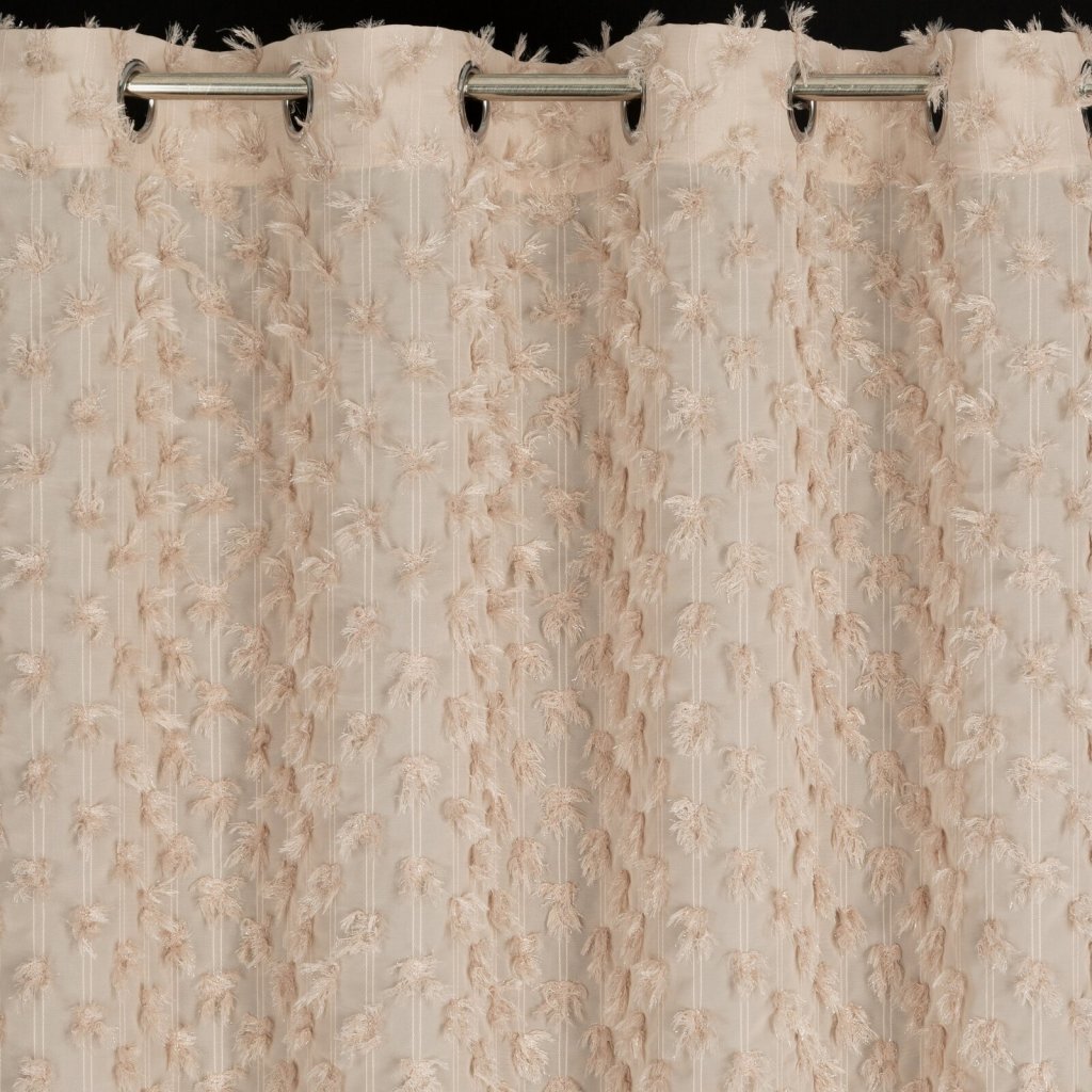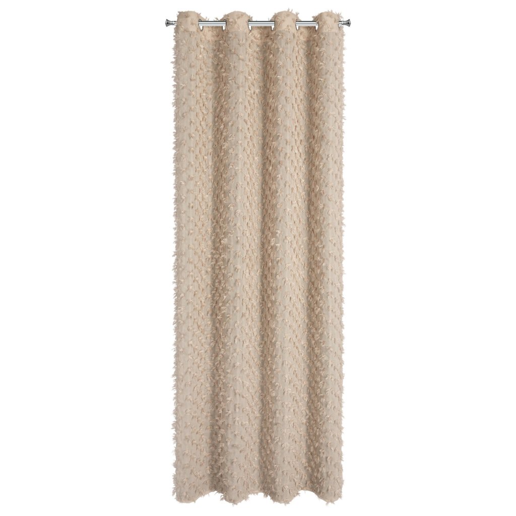 Hotový závěs s chlupatou aplikací, šířka: 135 cm, délka: 250 cm, barva: béžová, gramáž: 140 GSM, složení: 100% polyester.Doplňkové parametry