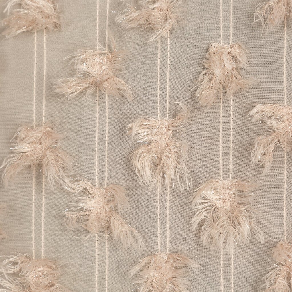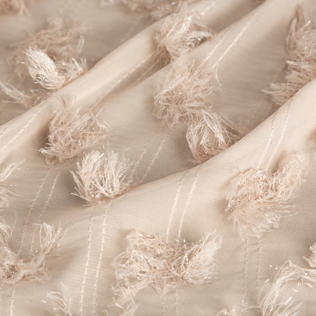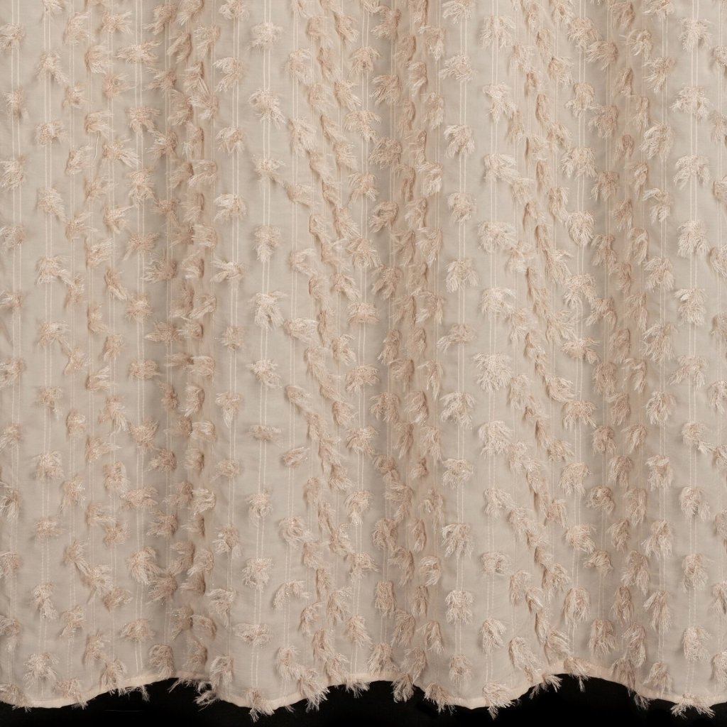 Hotový závěs s chlupatou aplikací, šířka: 135 cm, délka: 250 cm, barva: béžová, gramáž: 140 GSM, složení: 100% polyester.Doplňkové parametry
