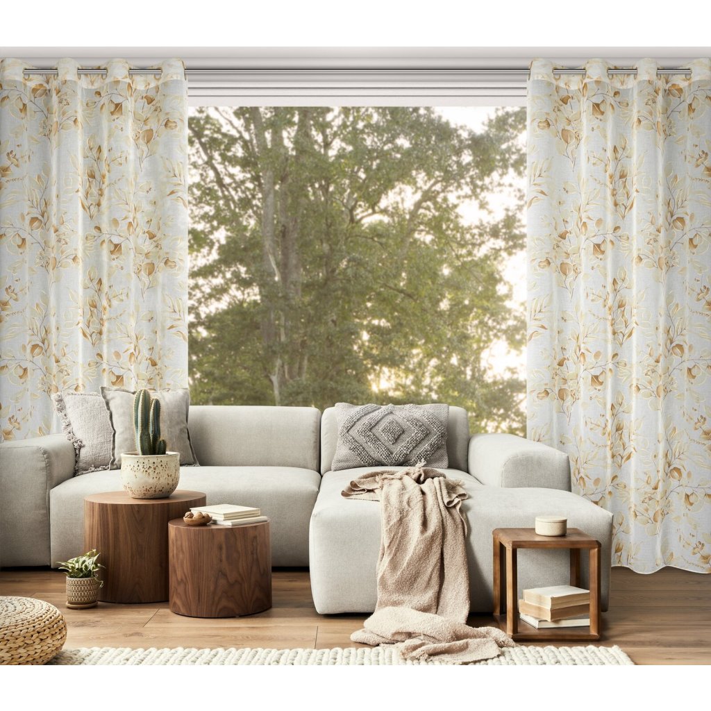 Závěs s botanickým motivem s lesklým potiskem, šířka: 140 cm, délka: 250 cm, barva: vícebarevná, hmotnost: 70 GSM, složení: 100% polyester.Doplňkové parametry